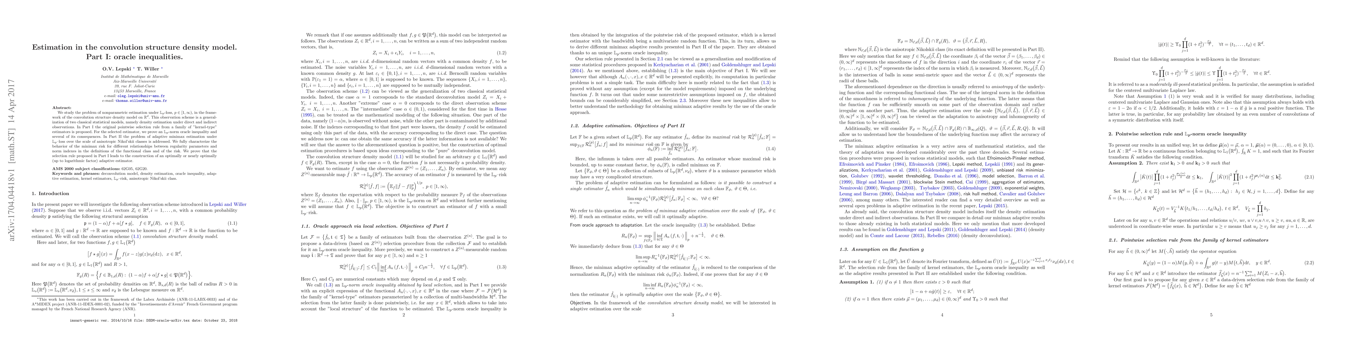 We study the problem of nonparametric estimation under $\bL_p$-loss, $p\in [1,\infty)$, in the framework of the convolution structure density model on $\bR^d$. This observation scheme is a generalization of two classical statistical models, namely density estimation under direct and indirect observations. In Part I the original pointwise selection rule from a family of "kernel-type" estimators is proposed. For the selected estimator, we prove an $\bL_p$-norm oracle inequality and several of its consequences. In Part II the problem of adaptive minimax estimation under $\bL_p$--loss over the scale of anisotropic Nikol'skii classes is addressed. We fully characterize the behavior of the minimax risk for different relationships between regularity parameters and norm indexes in the definitions of the functional class and of the risk. We prove that the selection rule proposed in Part I leads to the construction of an optimally or nearly optimally (up to logarithmic factor) adaptive estimator.