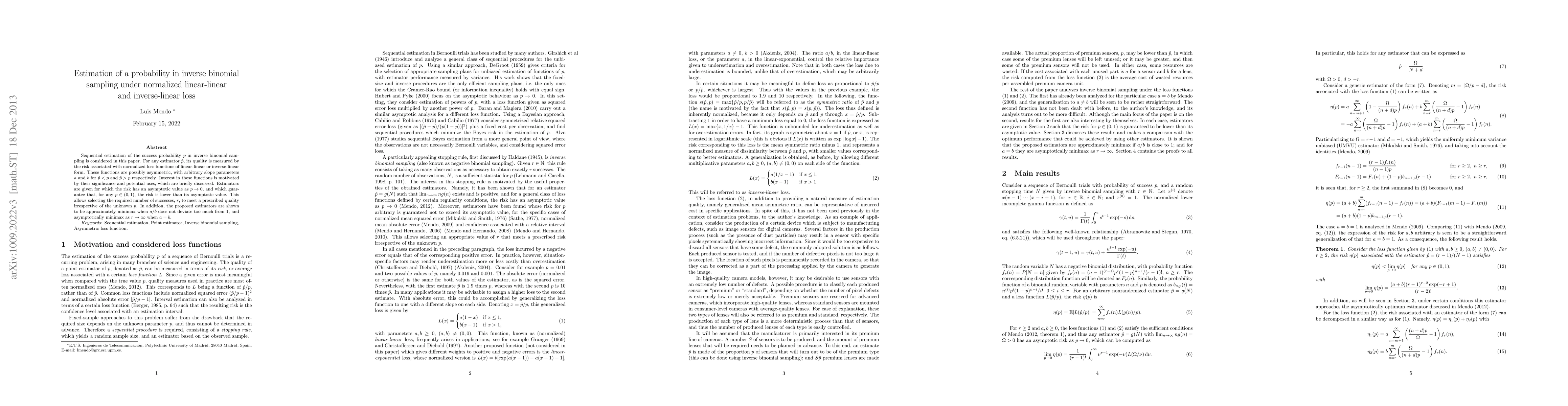 This paper presents sequential estimation methods for the success probability (p) in inverse binomial sampling, evaluated using normalized linear-linear and inverse-linear loss functions. It introduces estimators ensuring risk is below a set value for any p in (0,1), enabling pre-determined sampling quality regardless of p. These estimators are approximately minimax when slope parameters a and b are similar, and asymptotically minimax as the number of successes (r) increases when a equals b.