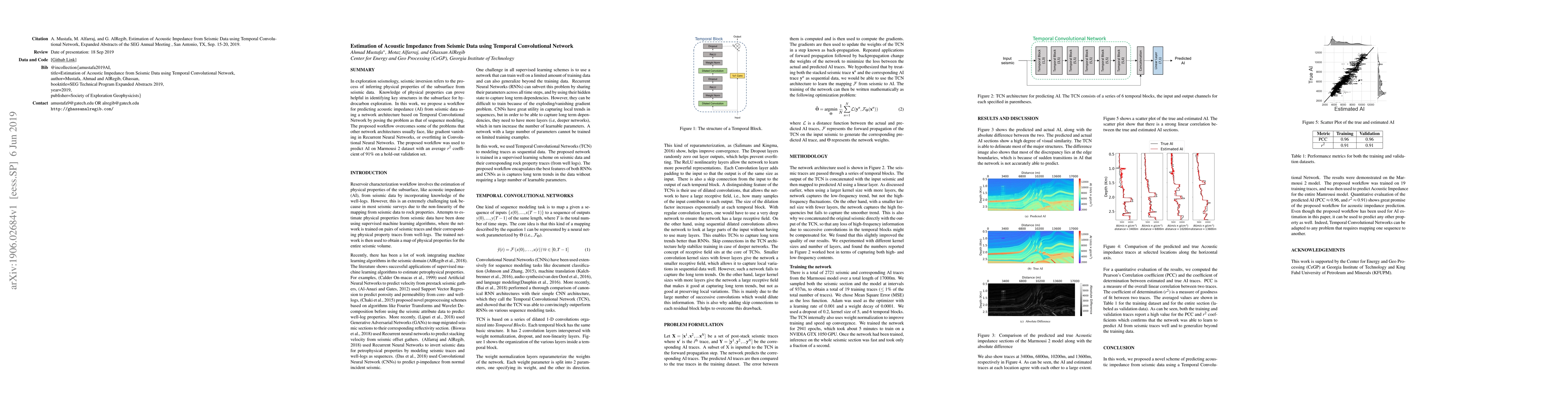 This paper proposes a Temporal Convolutional Network (TCN) architecture for estimating acoustic impedance from seismic data, addressing issues like gradient vanishing and overfitting. The method achieved an average $r^{2}$ coefficient of $91\%$ on the Marmousi 2 dataset, demonstrating its effectiveness in subsurface exploration.