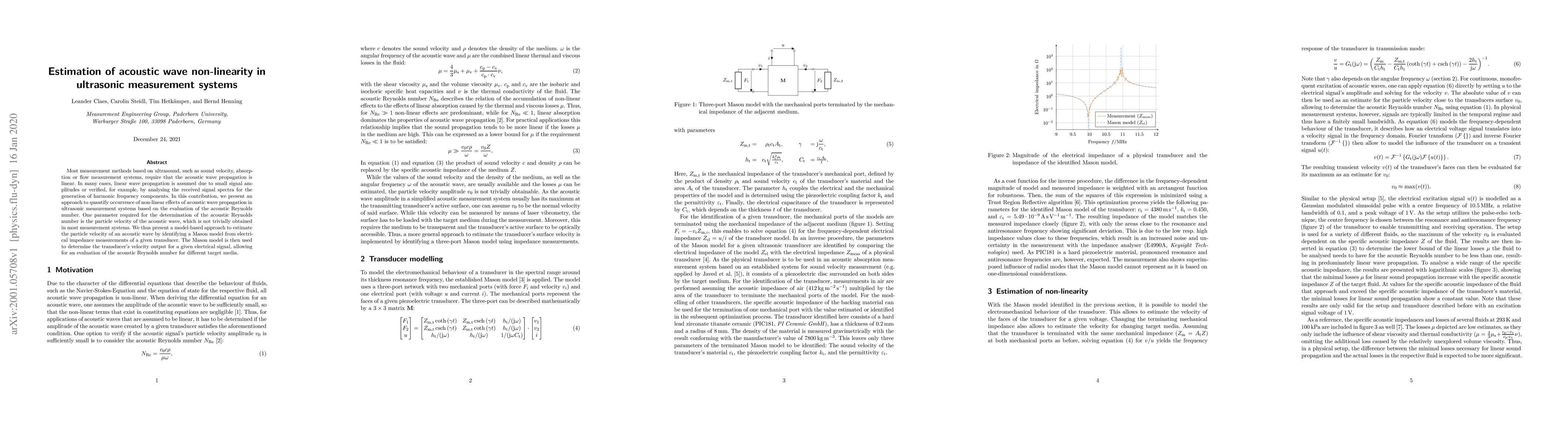 This paper proposes a method to quantify non-linear effects in ultrasonic measurement systems by estimating the acoustic wave's particle velocity through a model-based approach using Mason models derived from electrical impedance measurements of transducers. The estimated particle velocity aids in calculating the acoustic Reynolds number, facilitating the assessment of non-linear wave propagation.