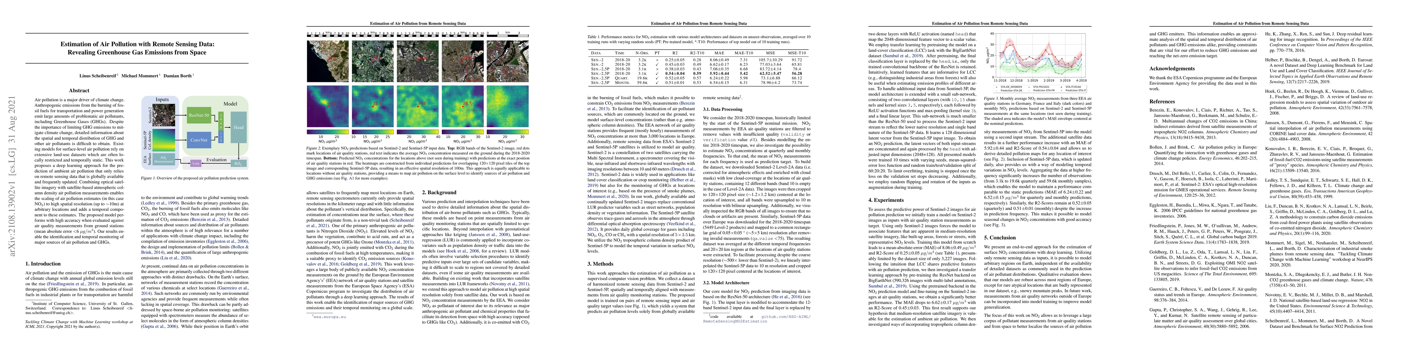 This paper proposes a deep learning model for predicting ambient air pollution using globally available remote sensing data, achieving high spatial resolution and temporal accuracy. The method combines optical satellite imagery with atmospheric column density measurements to estimate NO$_2$ levels, enabling detailed monitoring of air pollution and greenhouse gas sources.