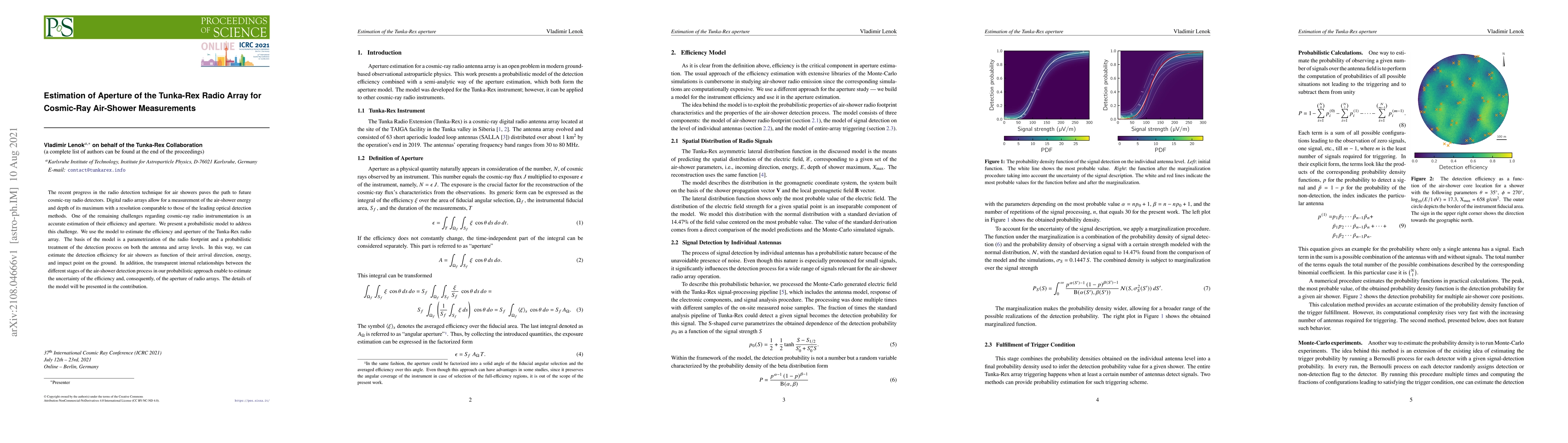 This paper presents a probabilistic model to estimate the efficiency and aperture of the Tunka-Rex radio array for cosmic-ray air-shower measurements, utilizing a parametrization of the radio footprint and a probabilistic treatment of the detection process. The model enables estimation of detection efficiency as a function of air shower parameters and provides insights into the uncertainty of these estimates.