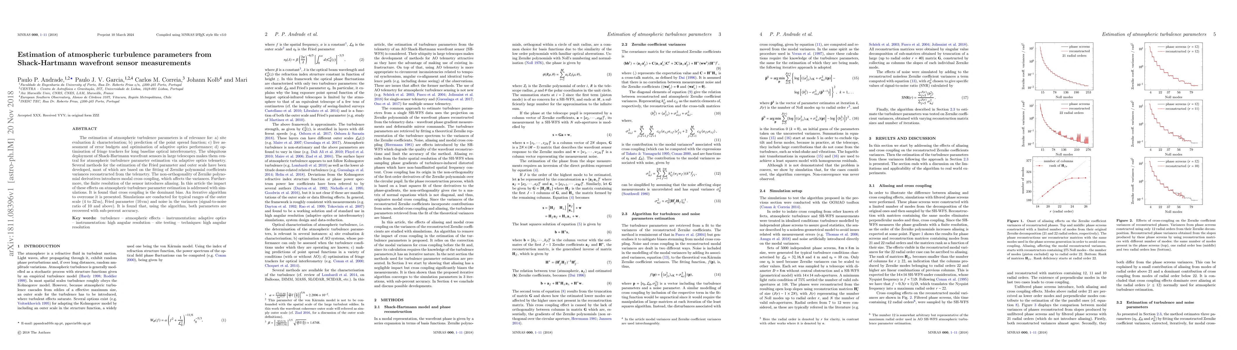 This paper investigates the estimation of atmospheric turbulence parameters using Shack-Hartmann wavefront sensors, addressing biases due to modal cross coupling and aliasing. An iterative algorithm is proposed to mitigate these effects, achieving sub-percent accuracy in estimating the Fried parameter and outer scale.