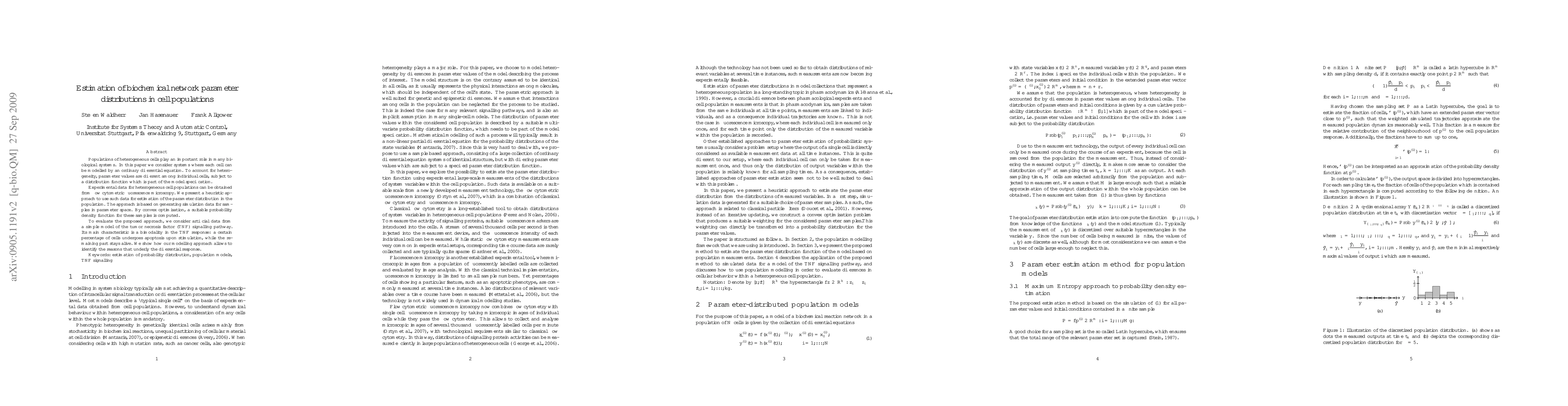This paper proposes a heuristic method for estimating biochemical network parameter distributions in heterogeneous cell populations using flow cytometric fluorescence microscopy data. The approach involves generating simulation data and employing convex optimization to determine a suitable probability density function, demonstrated through a model of the TNF signalling pathway.