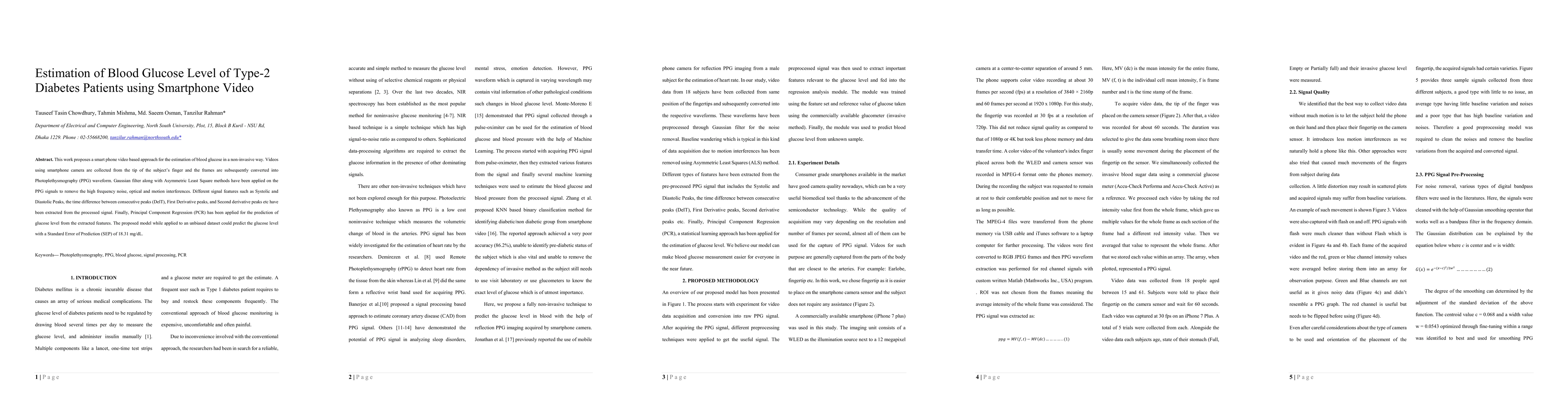This study introduces a non-invasive method to estimate blood glucose levels in Type-2 diabetes patients using videos from a smartphone camera, converting finger videos into signals that are analyzed to predict glucose levels. The approach achieves reasonably accurate predictions, demonstrating potential for easy and accessible glucose monitoring.