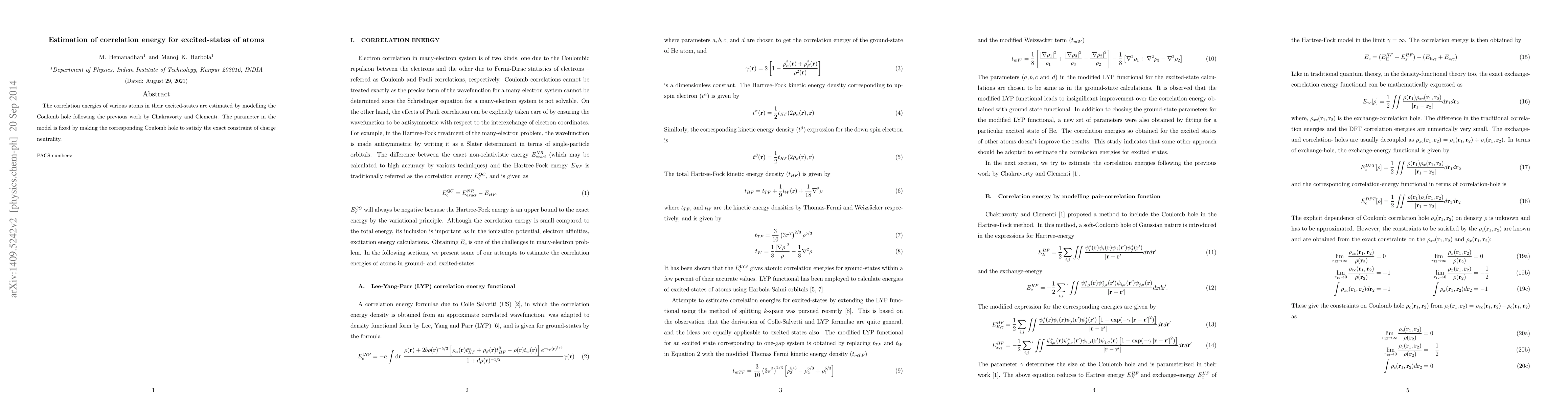 The correlation energies of various atoms in their excited-states are estimated by modelling the Coulomb hole following the previous work by Chakravorty and Clementi. The parameter in the model is fixed by making the corresponding Coulomb hole to satisfy the exact constraint of charge neutrality.