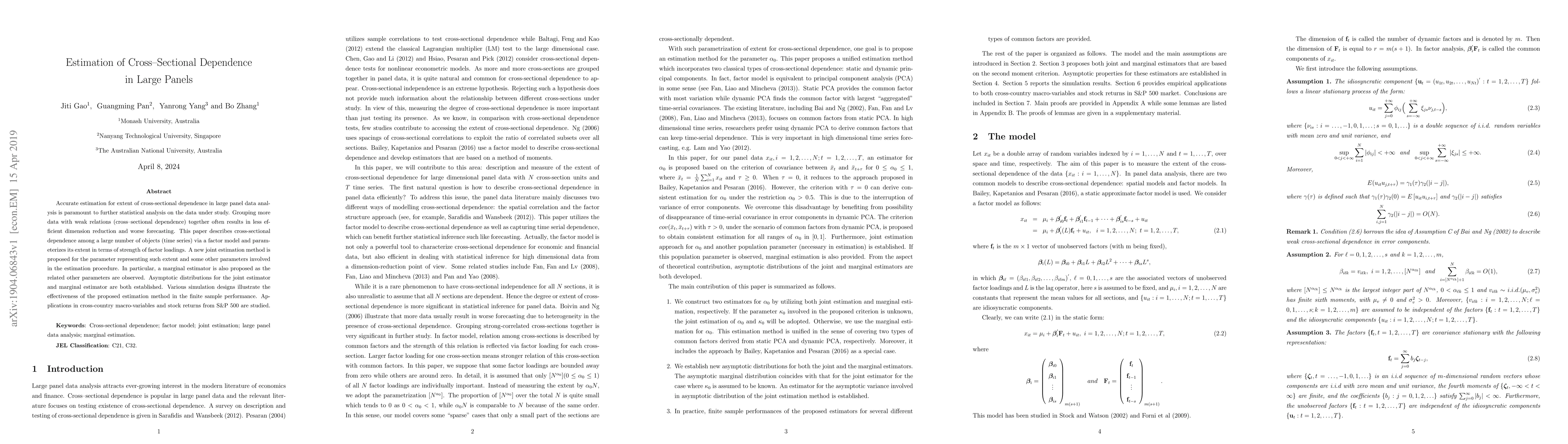 This paper proposes a method for estimating cross-sectional dependence in large panel data using a factor model, aiming to improve efficiency and forecasting. It introduces a joint estimation technique and demonstrates its effectiveness through simulations and applications in macroeconomic and stock market data.