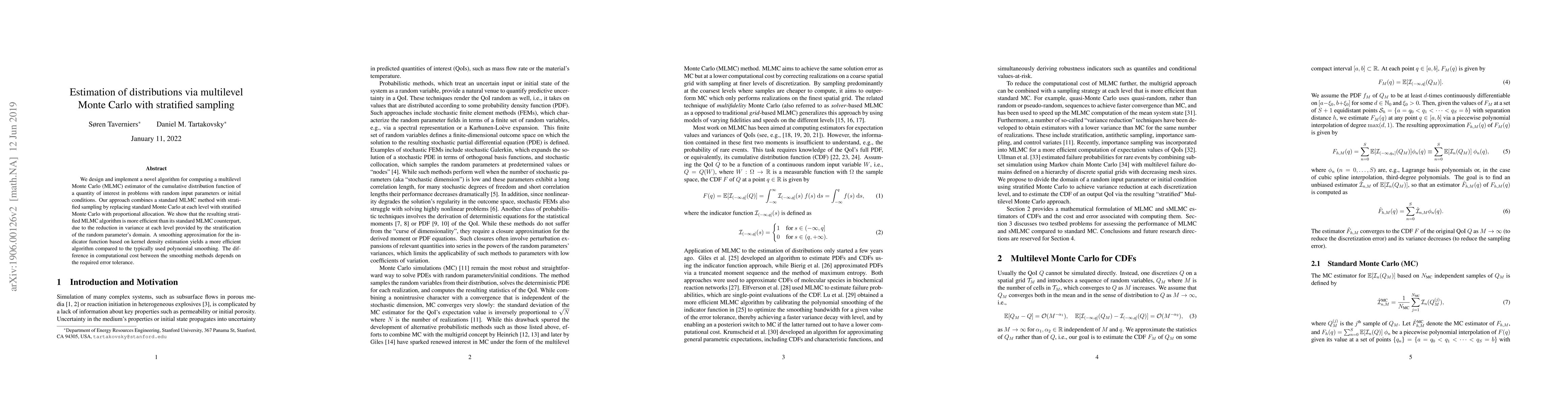 This paper introduces a novel stratified multilevel Monte Carlo (MLMC) algorithm for estimating cumulative distribution functions, which combines standard MLMC with stratified sampling to reduce variance. The proposed method is more efficient than traditional MLMC due to improved variance reduction and uses kernel density estimation for smoothing, offering computational benefits depending on the desired error tolerance.