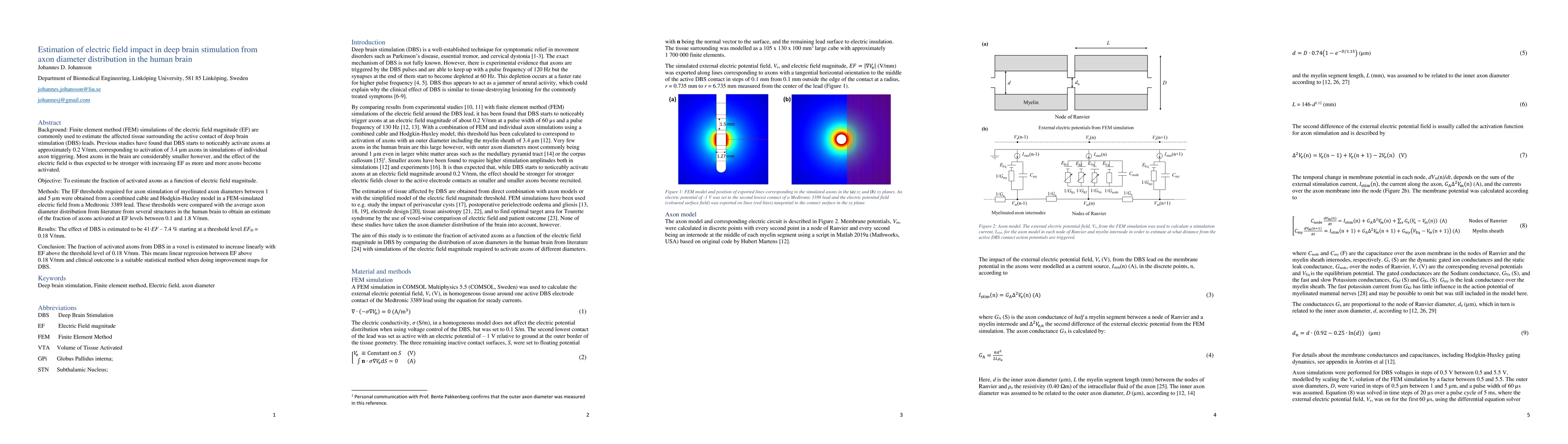 This study uses finite element method simulations to estimate the fraction of activated axons in deep brain stimulation (DBS) as a function of electric field magnitude (EF). The results show a linear increase in activated axons starting at 0.18 V/mm, suggesting linear regression is appropriate for DBS improvement maps.