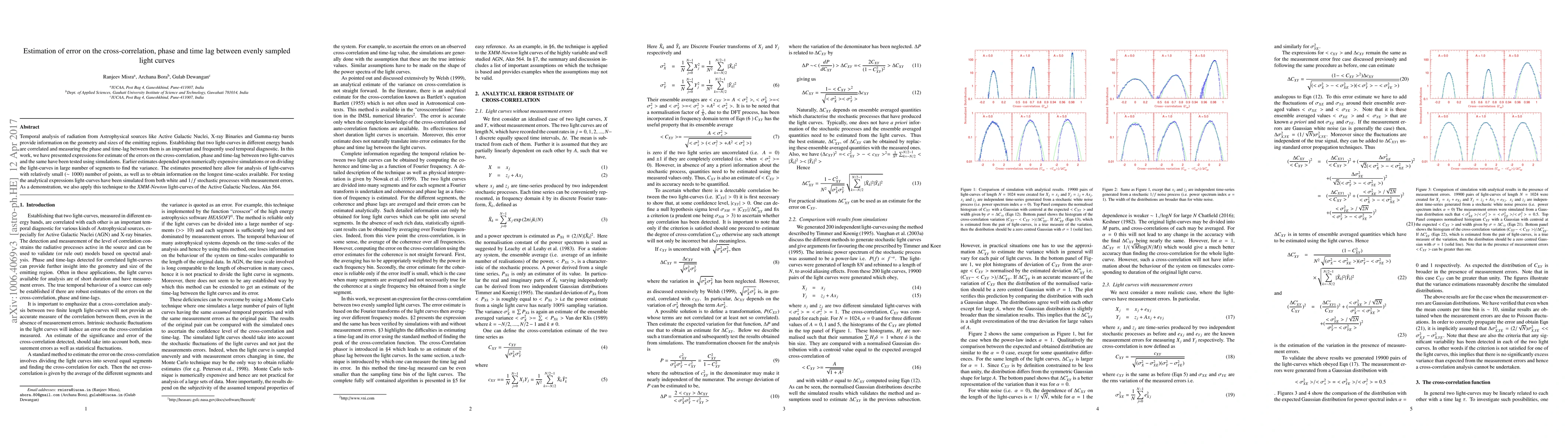 This paper presents new expressions for estimating errors in cross-correlation, phase, and time-lag between light-curves from astrophysical sources, validated through simulations. Unlike previous methods, these estimates are efficient for analyzing light-curves with fewer points and can provide insights on long time-scales.