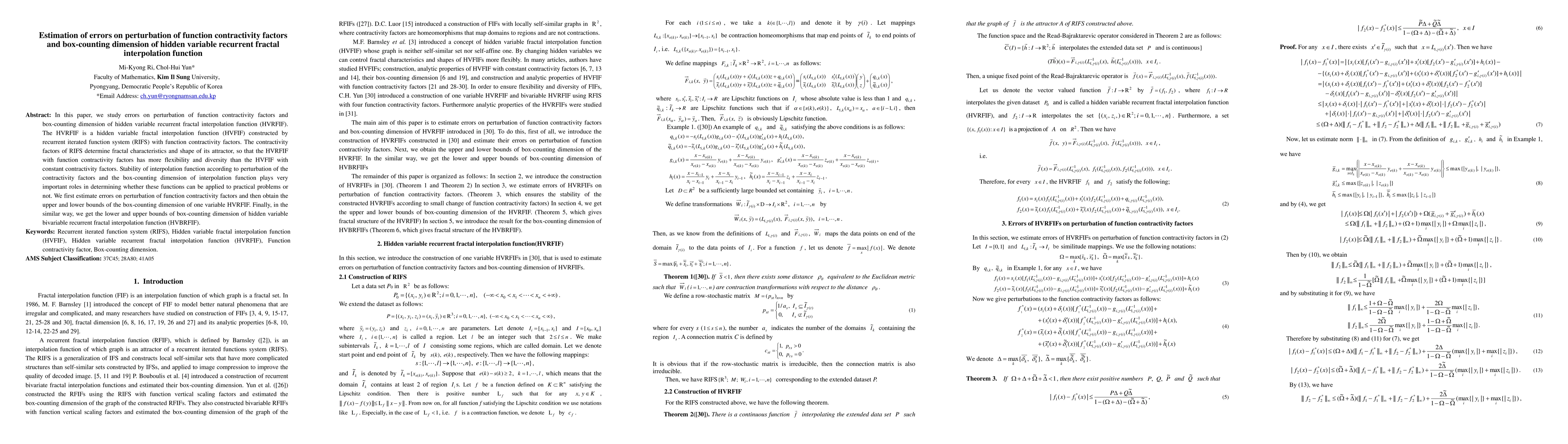 This paper investigates errors arising from perturbations in function contractivity factors and the box-counting dimension of hidden variable recurrent fractal interpolation functions (HVRFIF). It establishes upper and lower bounds for the box-counting dimension of both one-variable and bivariable HVRFIFs, highlighting their stability and practical applicability.