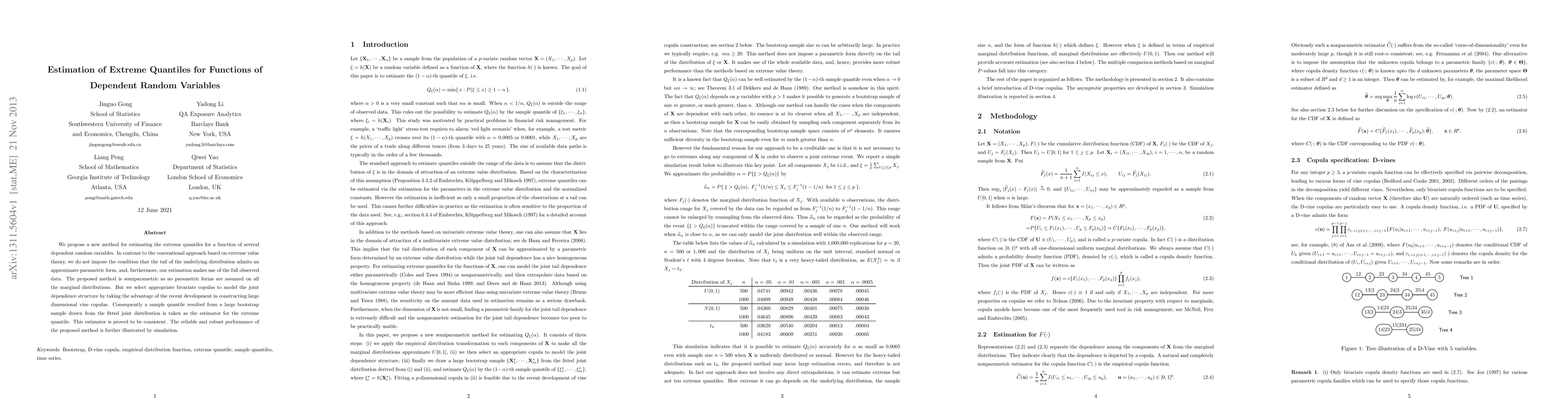 This research proposes a new method for estimating extreme quantiles of functions of dependent random variables without assuming parametric forms on the marginal distributions. It uses joint bivariate copulas to model dependence and is consistent with a sample bootstrap estimate.