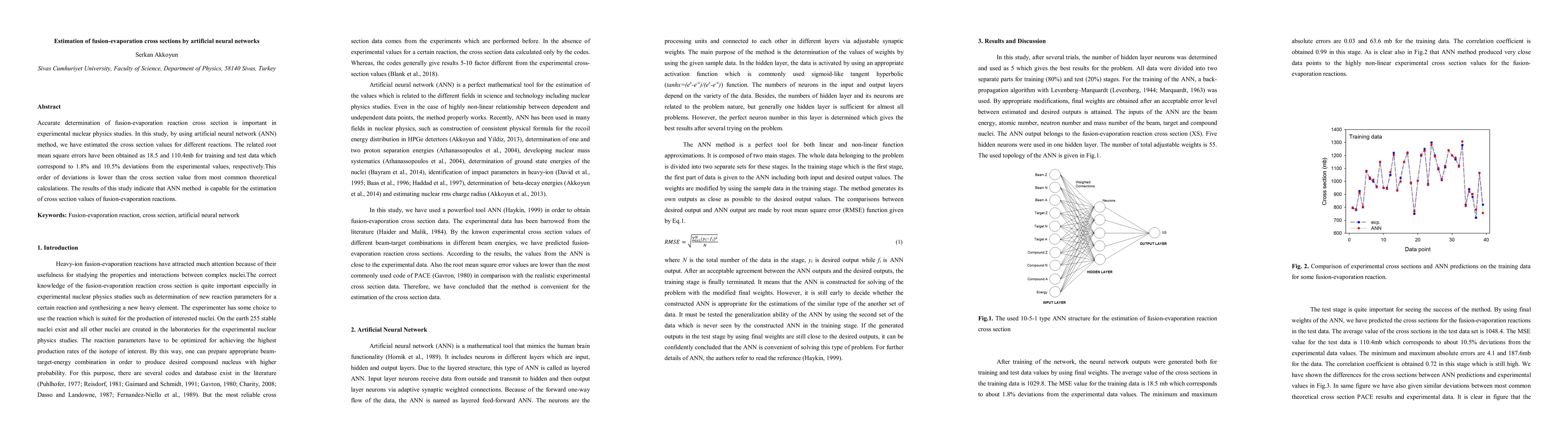 Accurate determination of fusion-evaporation reaction cross section is important in experimental nuclear physics studies. In this study, by using artificial neural network (ANN) method, we have estimated the cross section values for different reactions. The related root mean square errors have been obtained as 18.5 and 110.4mb for training and test data which correspond to 1.8% and 10.5% deviations from the experimental values, respectively.This order of deviations is lower than the cross section value from most common theoretical calculations. The results of this study indicate that ANN method is capable for the estimation of cross section values of fusion-evaporation reactions.