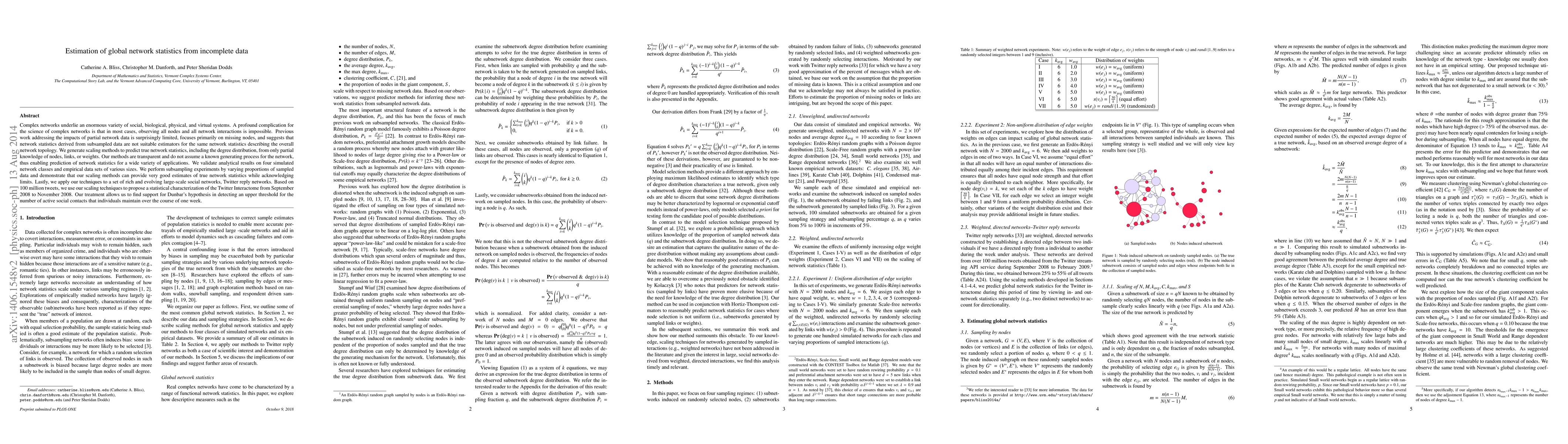 Complex networks underlie an enormous variety of social, biological, physical, and virtual systems. A profound complication for the science of complex networks is that in most cases, observing all nodes and all network interactions is impossible. Previous work addressing the impacts of partial network data is surprisingly limited, focuses primarily on missing nodes, and suggests that network statistics derived from subsampled data are not suitable estimators for the same network statistics describing the overall network topology. We generate scaling methods to predict true network statistics, including the degree distribution, from only partial knowledge of nodes, links, or weights. Our methods are transparent and do not assume a known generating process for the network, thus enabling prediction of network statistics for a wide variety of applications. We validate analytical results on four simulated network classes and empirical data sets of various sizes. We perform subsampling experiments by varying proportions of sampled data and demonstrate that our scaling methods can provide very good estimates of true network statistics while acknowledging limits. Lastly, we apply our techniques to a set of rich and evolving large-scale social networks, Twitter reply networks. Based on 100 million tweets, we use our scaling techniques to propose a statistical characterization of the Twitter Interactome from September 2008 to November 2008. Our treatment allows us to find support for Dunbar's hypothesis in detecting an upper threshold for the number of active social contacts that individuals maintain over the course of one week.