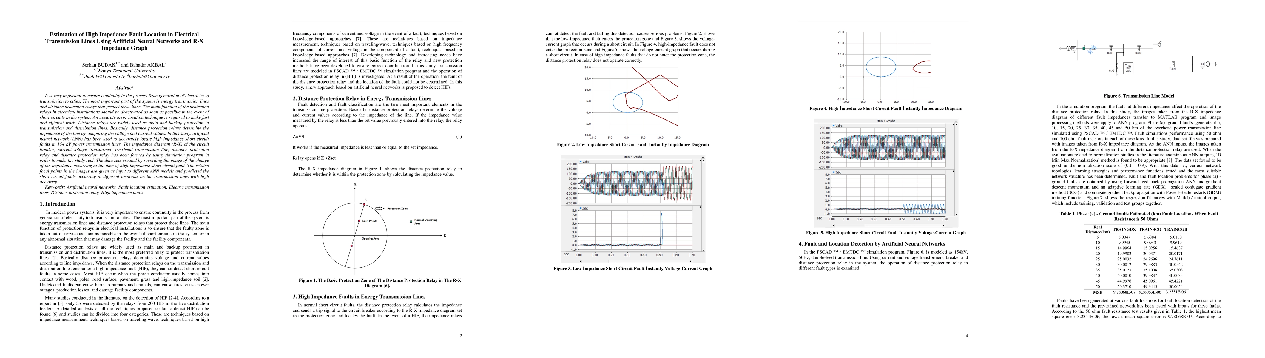 This paper proposes using artificial neural networks (ANN) to accurately locate high impedance faults in 154 kV transmission lines by analyzing R-X impedance graphs. The study employs simulation to create data sets of impedance changes during faults, which are then used to train ANN models for precise fault location prediction.