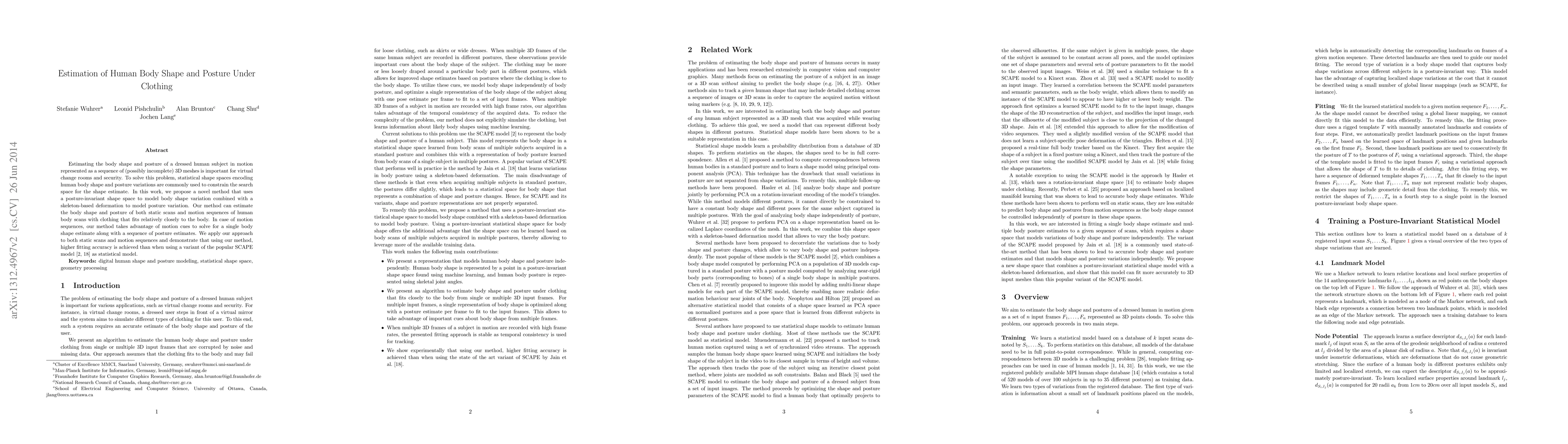 This paper proposes a new method for estimating human body shape and posture under clothing using a posture-invariant shape space and skeleton-based deformation. The method achieves higher fitting accuracy compared to the SCAPE model, demonstrating effectiveness for both static scans and motion sequences.