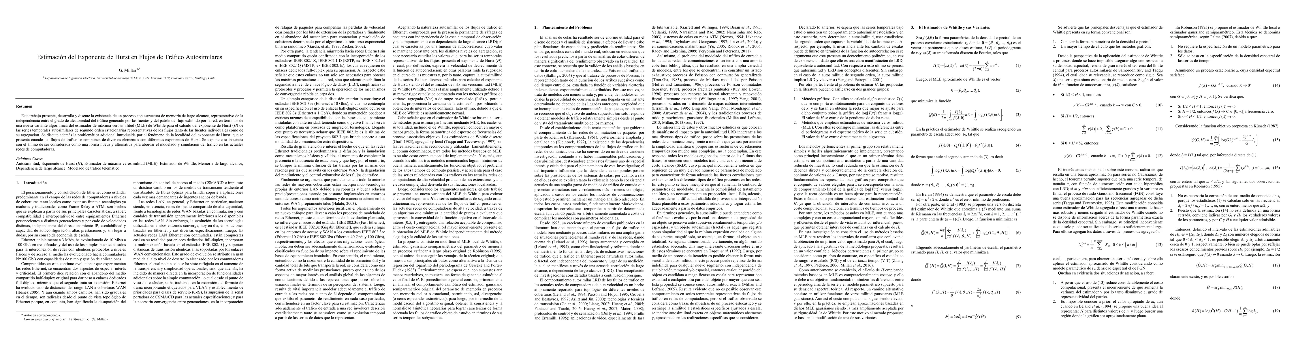 In this paper it presents, develops and discusses the existence of a process with long scope memory structure, representing of the independence between the degree of randomness of the traffic generated by the sources and flow pattern exhibited by the network. The process existence is presented in term of a new algorithmic that is a variant of the maximum likelihood estimator (MLE) of Whittle, for the calculation of the Hurst exponent (H) of self-similar stationary second order time series of the flows of the individual sources and their aggregation. Also, it is discussed the additional problems introduced by the phenomenon of the locality of the Hurst exponent, that appears when the traffic flows consist of diverse elements with different Hurst exponents. The instance is exposed with the intention of being considered as a new and alternative approach for modeling and simulating traffic in existing computer networks.