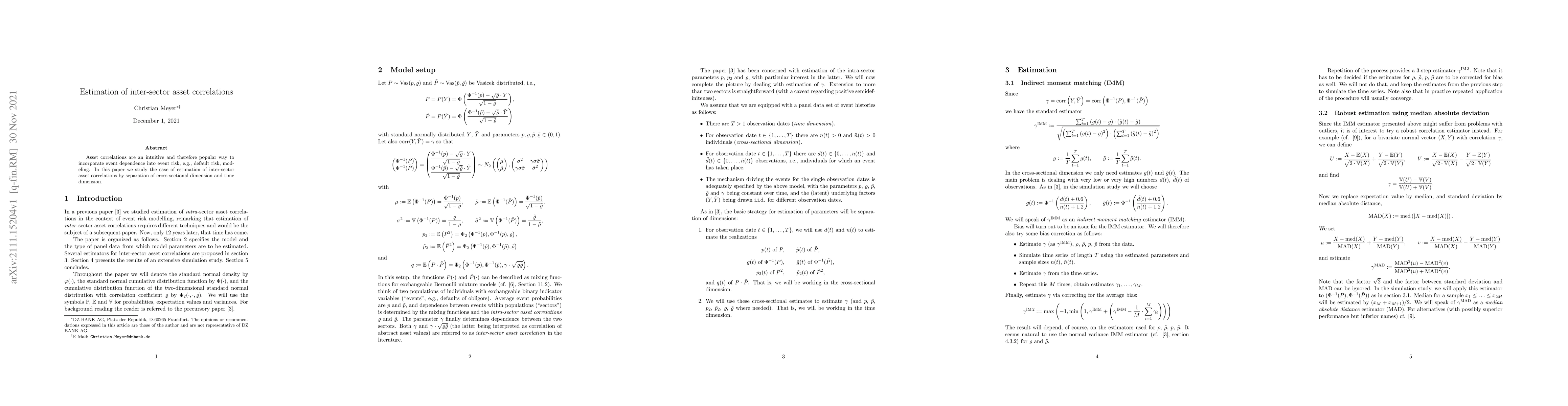 Asset correlations are an intuitive and therefore popular way to incorporate event dependence into event risk, e.g., default risk, modeling. In this paper we study the case of estimation of inter-sector asset correlations by separation of cross-sectional dimension and time dimension.