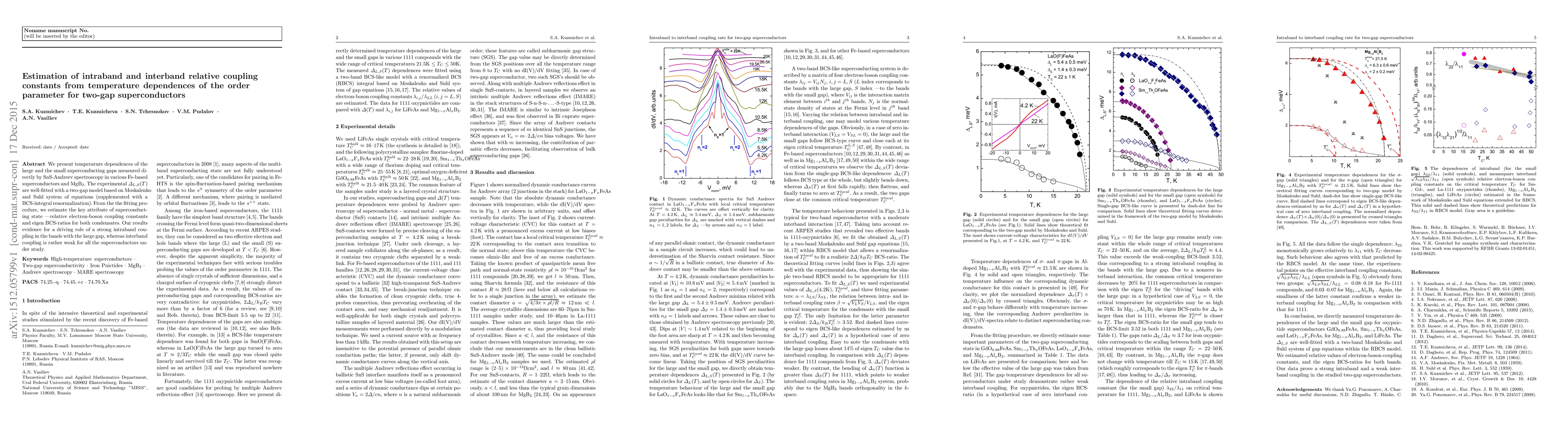 Researchers studied temperature-dependent superconducting gaps in various Fe-based superconductors and MgB2, finding strong intraband coupling for large gaps and weak interband coupling.