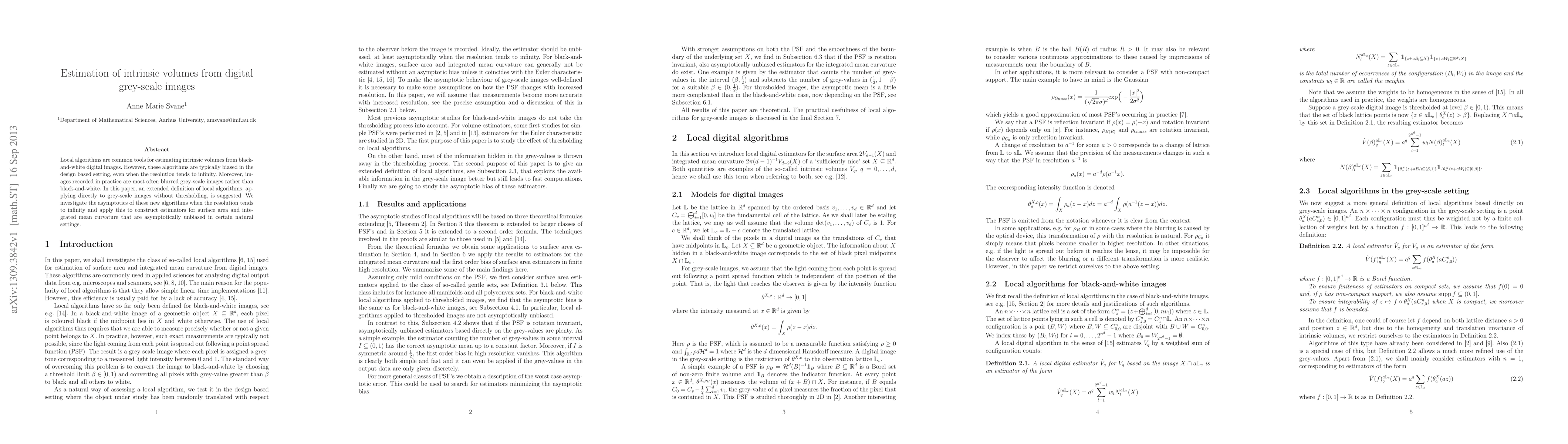 This paper proposes extended local algorithms for estimating intrinsic volumes from grey-scale images without thresholding, addressing the bias in traditional methods. It investigates the asymptotic behavior of these new algorithms and constructs estimators for surface area and integrated mean curvature that are asymptotically unbiased.