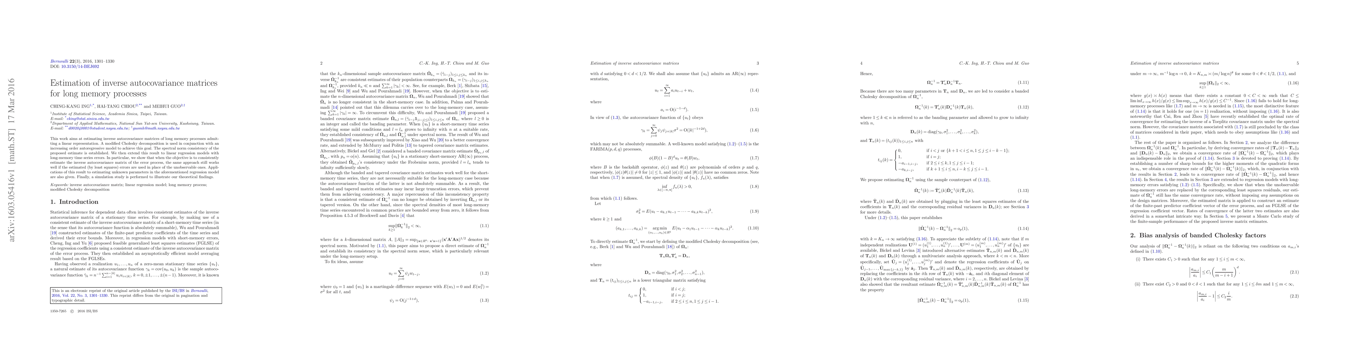 A new method is proposed to estimate inverse autocovariance matrices for long memory processes with high spectral norm consistency. The approach extends to linear regression models with long-memory time series errors.