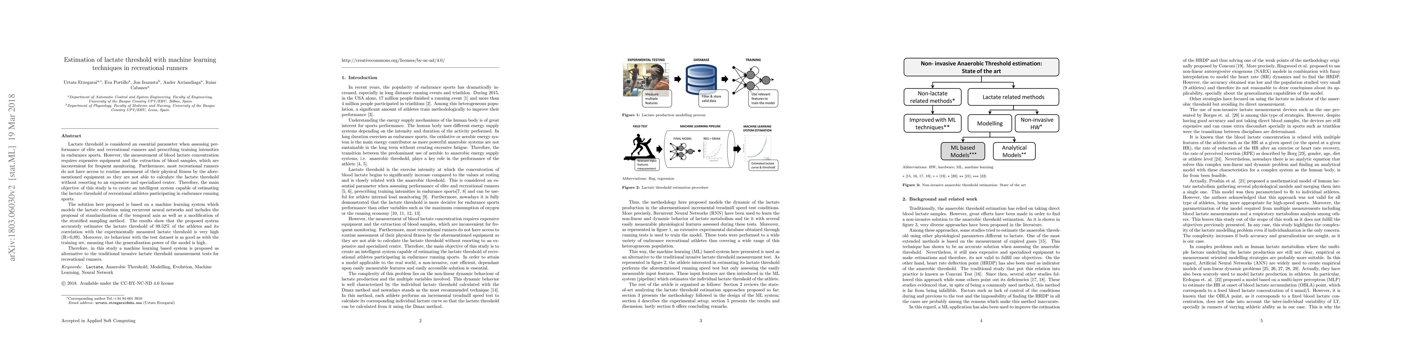 This study proposes a machine learning system using recurrent neural networks to estimate the lactate threshold in recreational runners, offering a cost-effective alternative to traditional invasive methods. The model achieves an 89.52% accuracy rate and demonstrates high correlation (R=0.89) with experimentally measured lactate thresholds.