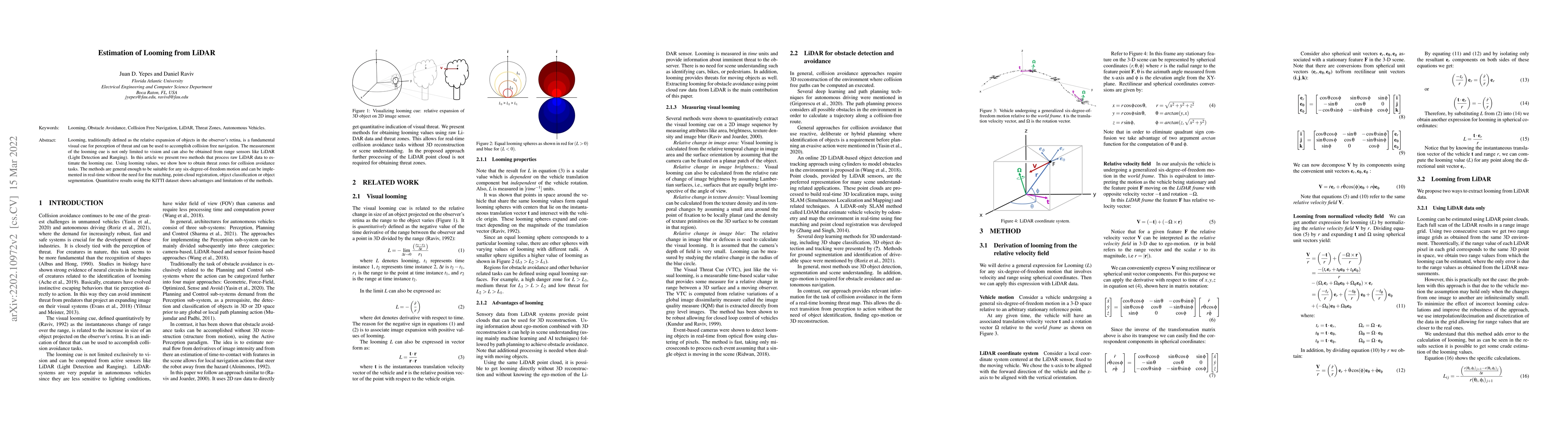 Researchers developed two methods to estimate looming cues from LiDAR data, enabling real-time collision avoidance in navigation tasks, with promising results on the KITTI dataset.