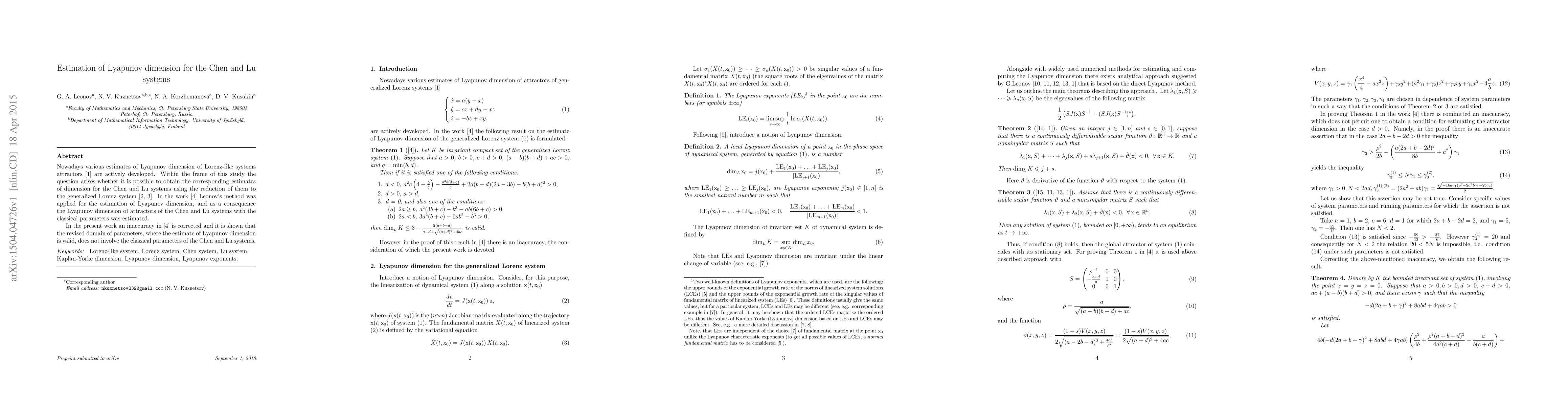 This paper corrects an inaccuracy in a previous estimate of the Lyapunov dimension for the Chen and Lu systems, showing that the revised estimate is valid outside the classical parameter domain. The study uses a method to reduce these systems to a generalized Lorenz model.