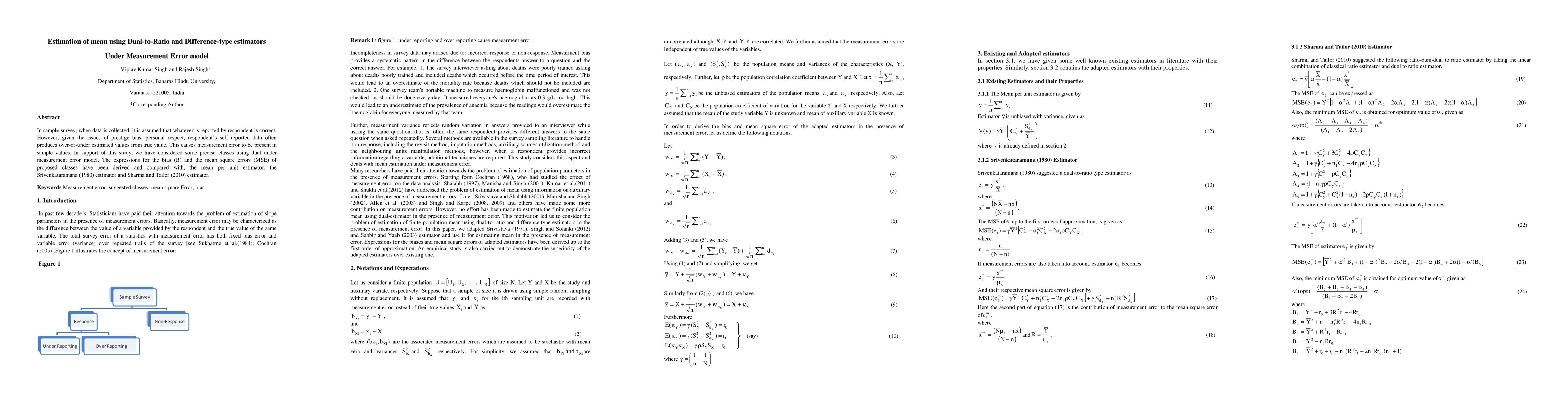 This study investigates how measurement errors affect survey data estimation using two new estimators: dual-to-ratio and difference-type estimators. It compares these estimators with existing methods to provide more accurate estimates of the mean in sample surveys.
