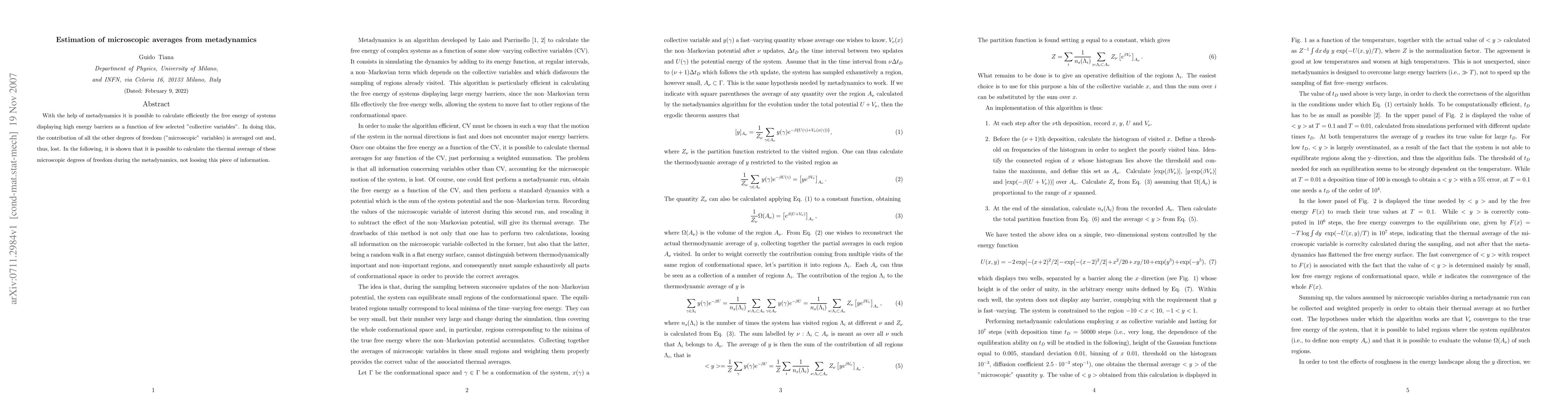 This paper demonstrates a method to estimate microscopic averages during metadynamics simulations, allowing for the retention of thermal averages of microscopic variables that are typically averaged out, thus preserving crucial information.