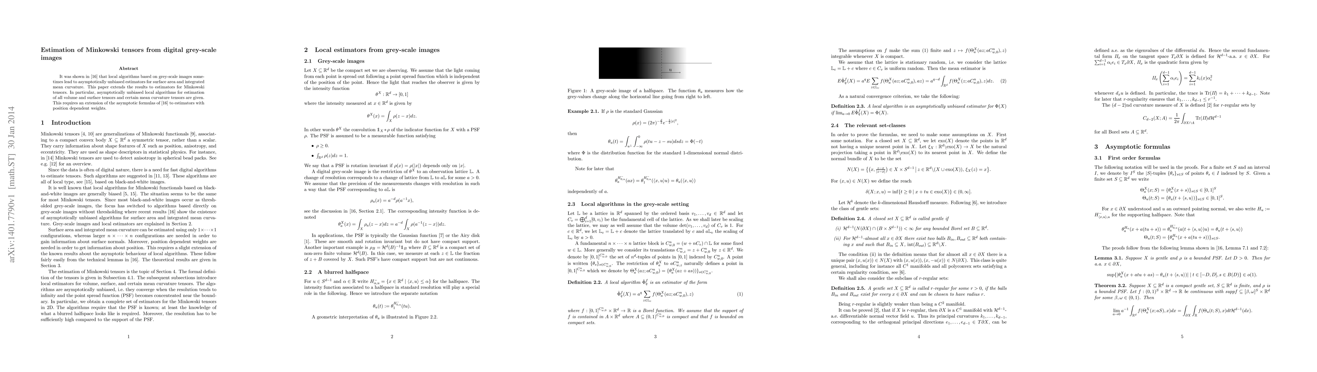This paper develops local algorithms for estimating Minkowski tensors from digital grey-scale images, extending previous results for surface area and mean curvature to include volume and surface tensors, with position-dependent weights.