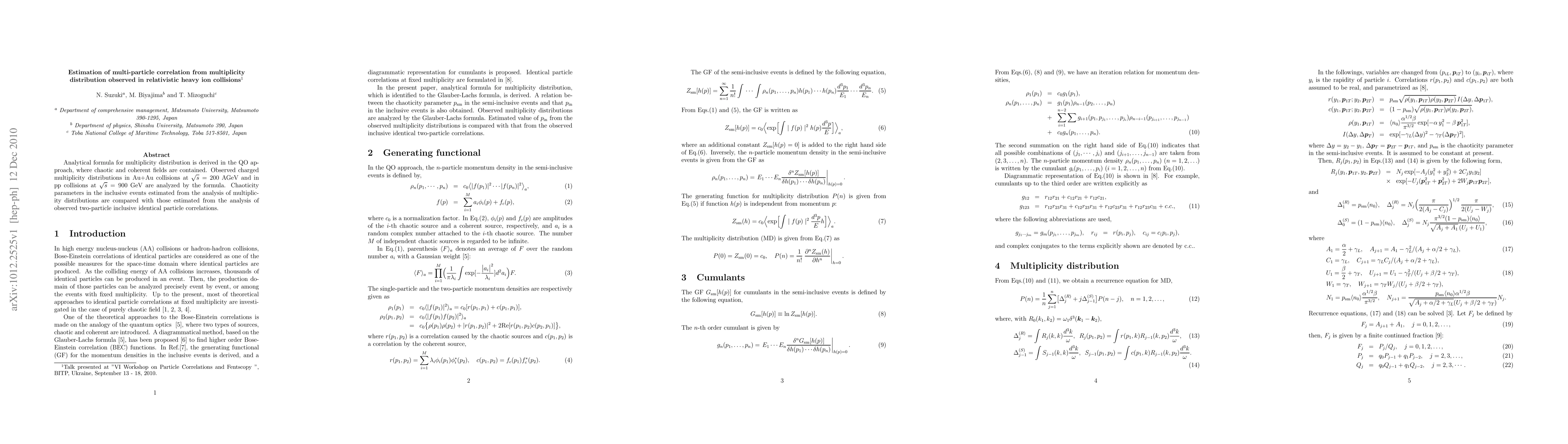 This paper derives an analytical formula for multiplicity distribution in relativistic heavy ion collisions using the QO approach, analyzing Au+Au and pp collision data to compare chaoticity parameters estimated from multiplicity distributions and two-particle correlations.