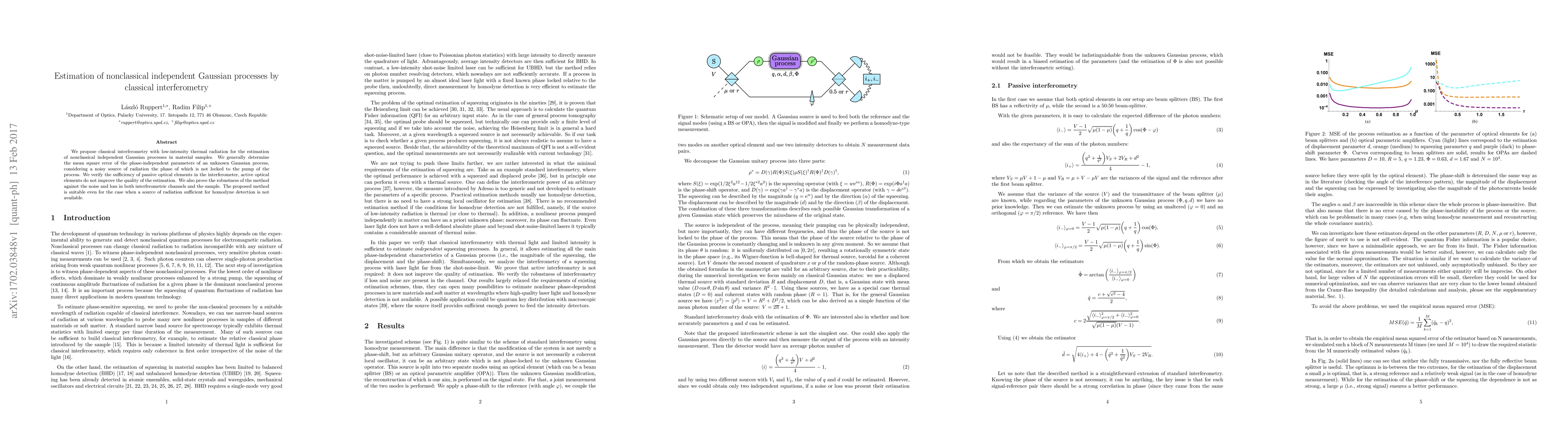 This paper proposes using classical interferometry with low-intensity thermal radiation to estimate nonclassical independent Gaussian processes in material samples. The method demonstrates robustness against noise and loss, and passive optical elements are sufficient for accurate estimation without the need for homodyne detection.