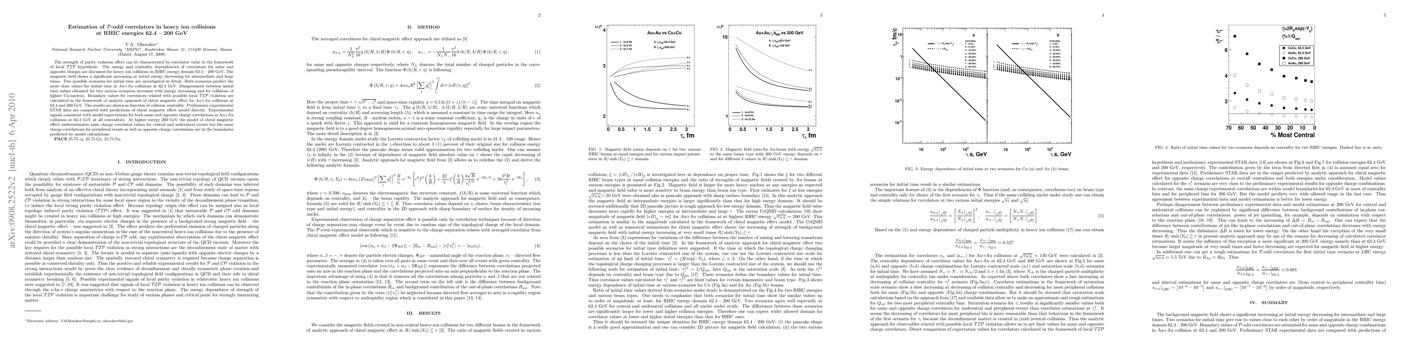 The strength of parity violation effect can be characterized by correlator value in the framework of local $\mathcal{TIP}$ hypothesis. The energy and centrality dependencies of correlators for same and opposite charges are discussed for heavy ion collisions in RHIC energy domain 62.4 -- 200 GeV. The magnetic field shows a significant increasing at initial energy decreasing for intermediate and large times. Two possible scenarios for initial time are investigated in detail. Both scenarios predict the most close values for initial time in ${Au+Au}$ collisions at 62.4 GeV. Disagreement between initial time values obtained for two various scenarios increases with energy increasing and for collisions of lighter ${Cu}$-nucleus. Boundary values for correlators related with possible local $\mathcal{TIP}$ violation are calculated in the framework of analytic approach of chiral magnetic effect for ${Au+Au}$ collisions at 62.4 and 200 GeV. The results are shown as function of collision centrality. Preliminary experimental STAR data are compared with predictions of chiral magnetic effect model directly. Experimental signals consistent with model expectations for both same and opposite charge correlations in ${Au+Au}$ collisions at 62.4 GeV at all centralities. At higher energy 200 GeV the model of chiral magnetic effect underestimates same charge correlator values for central and midcentral events but the same charge correlations for peripheral events as well as opposite charge correlations are in the boundaries predicted by model calculations.