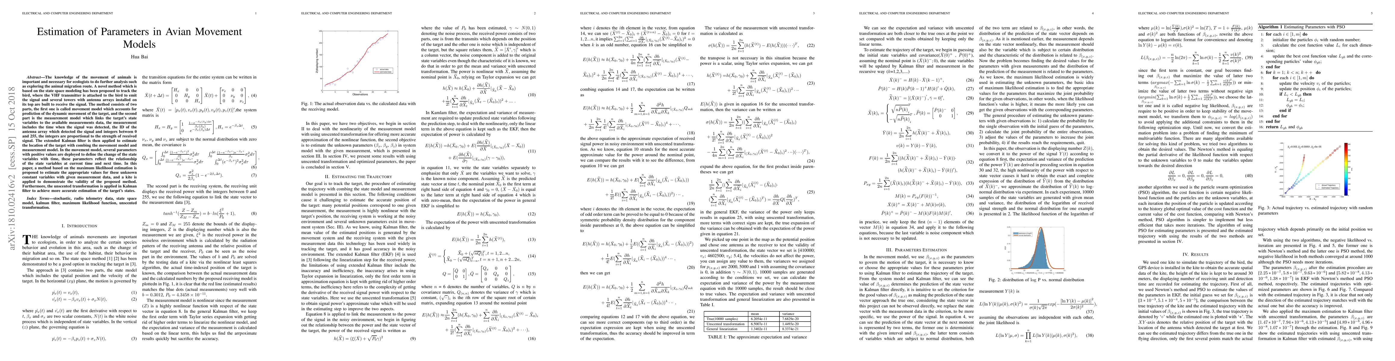 The knowledge of the movement of animals is important and necessary for ecologists to do further analysis such as exploring the animal migration route. A novel method which is based on the state space modeling has been proposed to track the bird, where the VHF transmitter is attached to the bird to emit the signal and several towers with antenna arrays installed on its top are built to receive the signal. The method consists of two parts, the first one is called movement model which accounts for prediction of the dynamic movement of the target, and the second part is the measurement model which links the target's state variables to the available measurements data, the measurement includes the time when the signal was detected, the ID of the antenna array which detected the signal and integers between 0 and 255, the integers are proportional to the strength of received signal. The extended Kalman filter is then applied to estimate the location of the target with combing the movement model and measurement model. In the movement model, several parameters with positive values are deployed to define the change of the state variables with time, these parameters reflect the relationship of the state variables at current time and next time. In this paper, a method based on the maximum likelihood estimation is proposed to estimate the appropriate values for these unknown constant variables with given measurement data, and a kite is applied to demonstrate the validity of the proposed method. Furthermore, the unscented transformation is applied in Kalman filter to achieve more accurate estimation of the target's states.