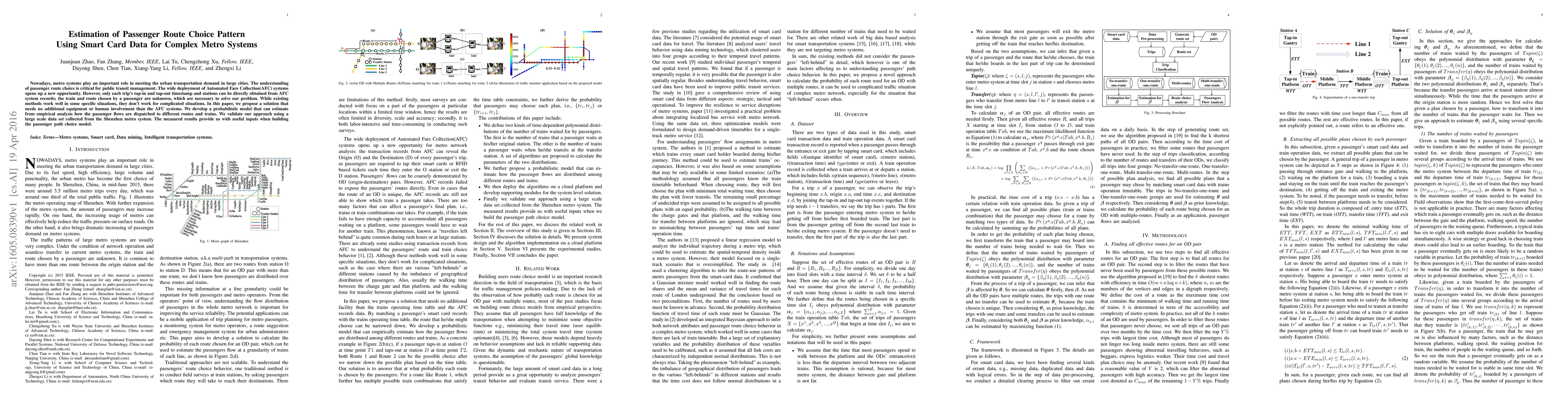 This paper proposes a probabilistic model to estimate passenger route choice patterns in complex metro systems using only Automated Fare Collection (AFC) data. The model estimates train and route choices without additional equipment, validated with Shenzhen metro data, providing insights for public transit management.