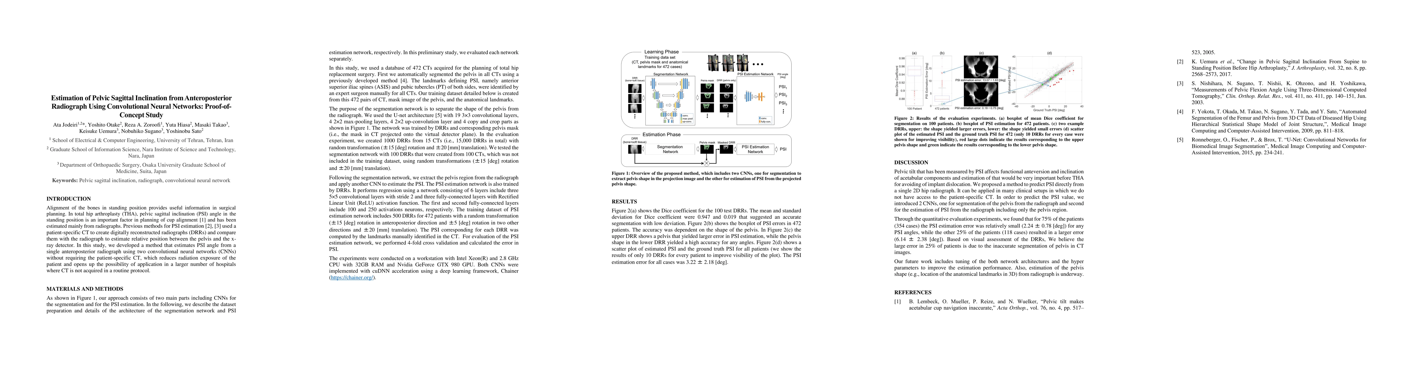 This study introduces a convolutional neural network (CNN) method to estimate pelvic sagittal inclination (PSI) from an anteroposterior radiograph, eliminating the need for patient-specific CT scans. This approach reduces patient radiation exposure and broadens the potential for PSI estimation in hospitals without routine CT protocols.