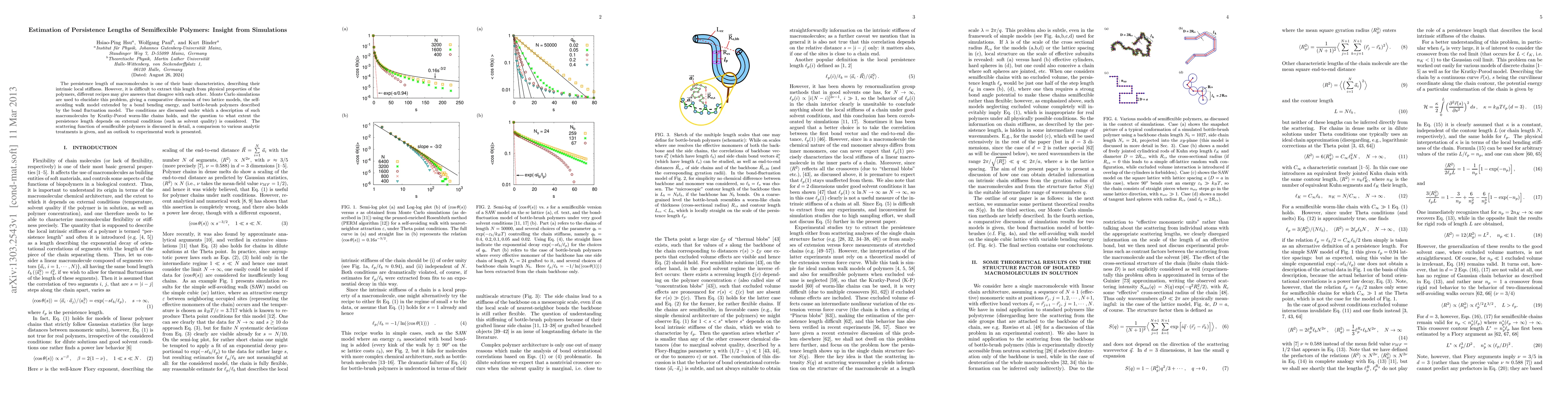 This paper uses Monte Carlo simulations to estimate the persistence lengths of semiflexible polymers, comparing self-avoiding walk models with bond bending energy and bottle-brush polymers. It discusses the conditions under which these polymers can be described by Kratky-Porod worm-like chains and how external factors like solvent quality influence persistence length.
