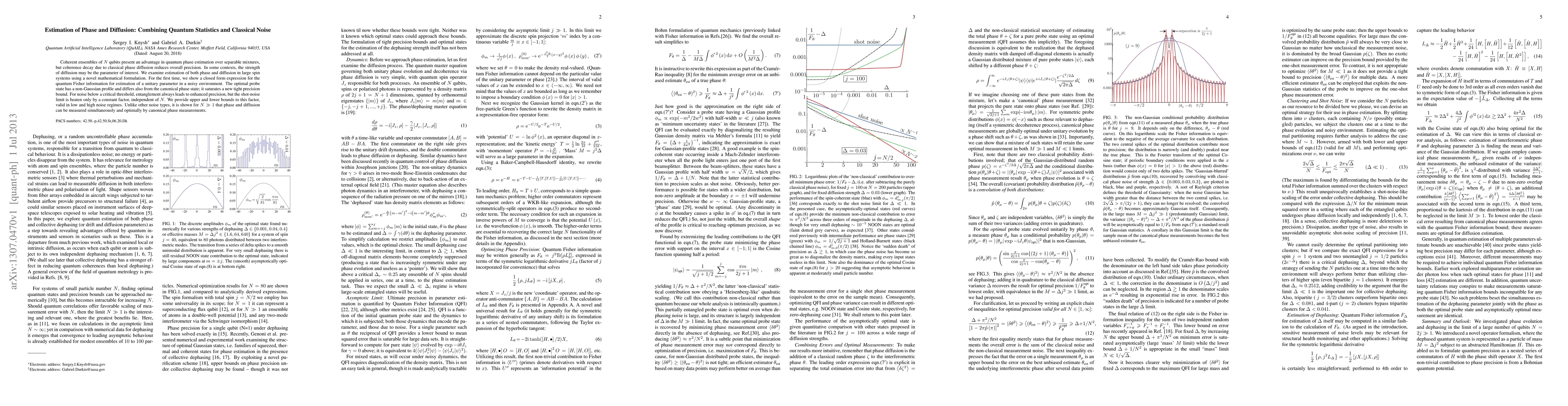 This paper develops a novel mathematical framework to estimate both phase and diffusion in large quantum spin systems, showing a closed-form expression for quantum Fisher information in noisy environments. It reveals that entanglement enhances precision but only beats the shot-noise limit by a constant factor, providing bounds for this factor across noise regimes.