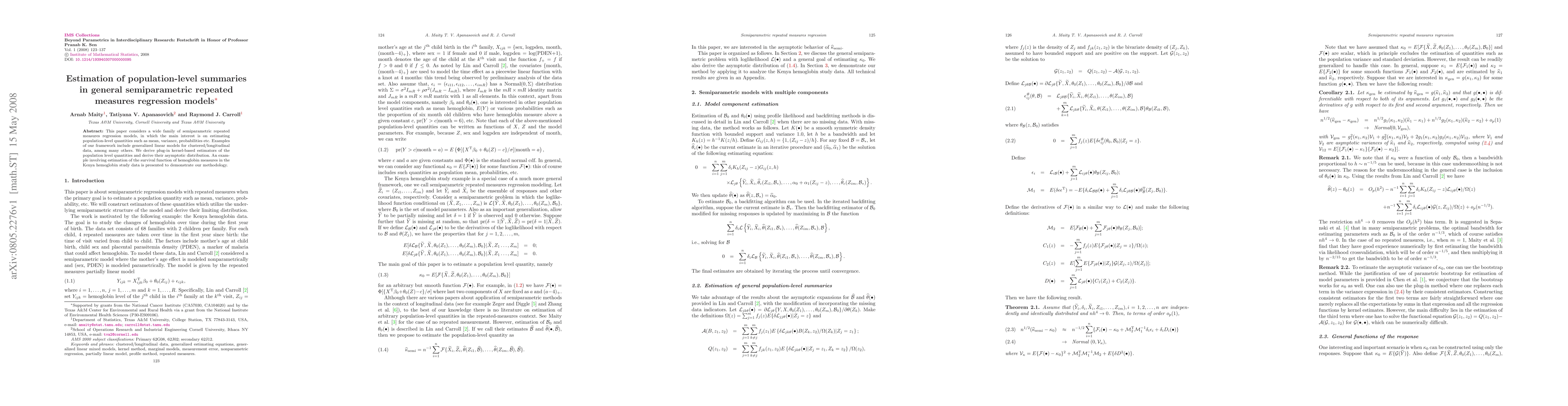 This paper develops kernel-based estimators for population-level summaries in semiparametric repeated measures regression models, including generalized linear models for clustered data. It demonstrates the methodology with an example estimating the survival function from hemoglobin study data.