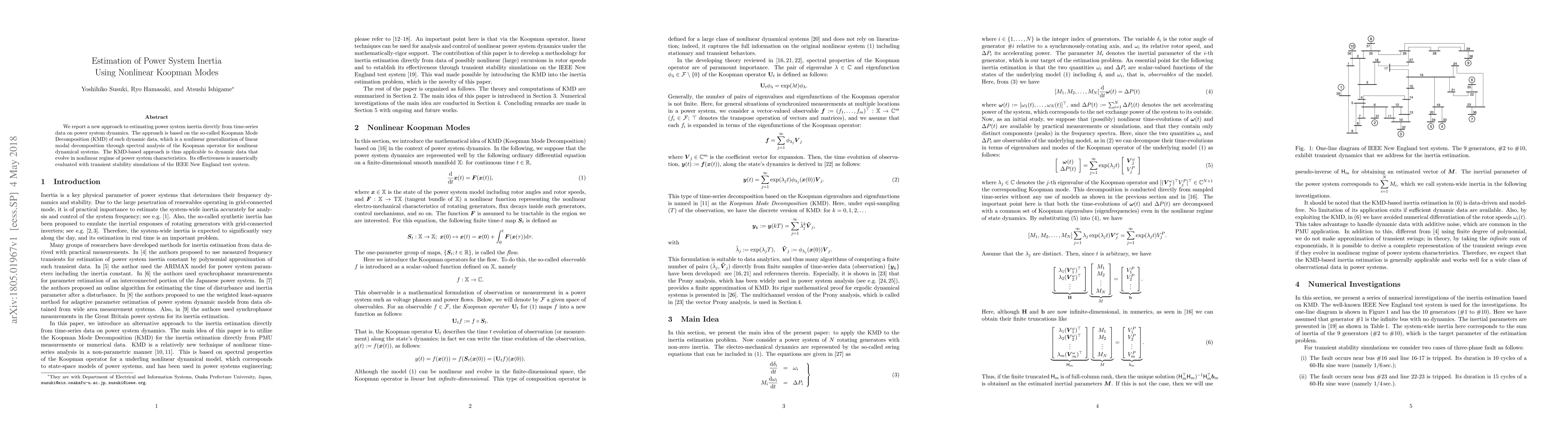 This paper introduces a novel method for estimating power system inertia using Nonlinear Koopman Mode Decomposition (KMD) on time-series data. The KMD approach is effective for nonlinear dynamics and is validated through transient stability simulations on the IEEE New England test system.