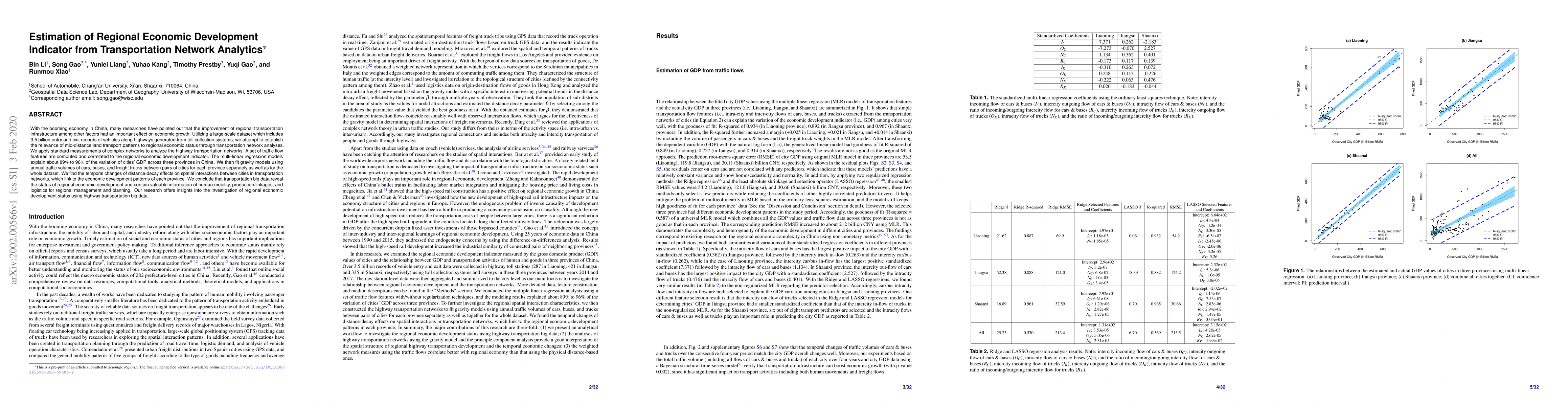 This study uses transportation network analytics and big data from highway toll systems to correlate mid-distance land transport patterns with regional economic development in China. The research finds that traffic flow features and gravity models of inter-city transportation volumes significantly predict regional GDP, offering insights for regional economic planning and management.