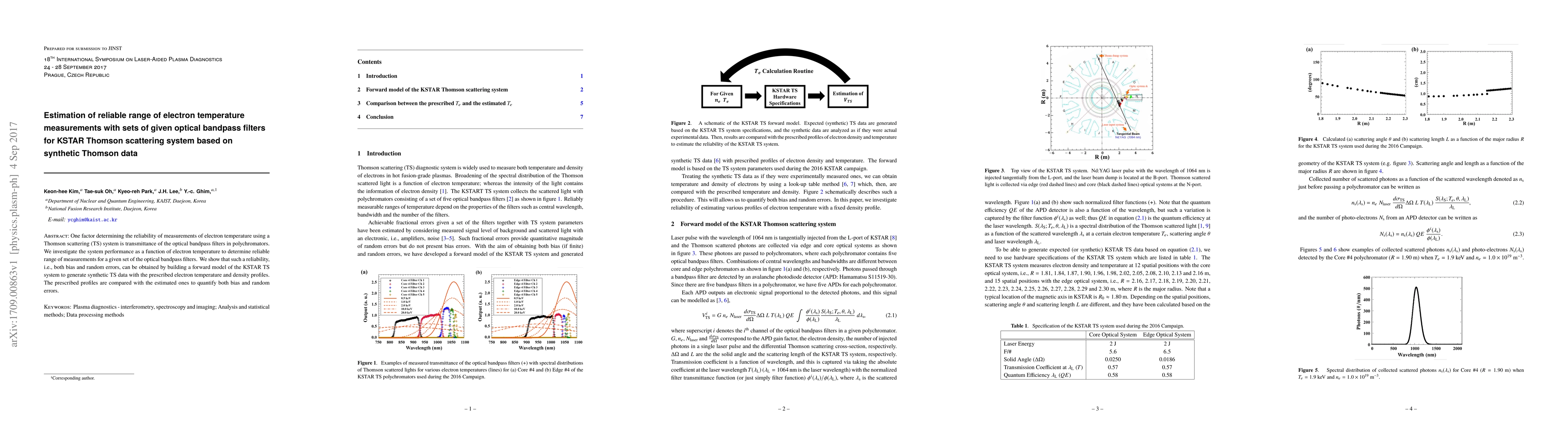 One factor determining the reliability of measurements of electron temperature using a Thomson scattering (TS) system is transmittance of the optical bandpass filters in polychromators. We investigate the system performance as a function of electron temperature to determine reliable range of measurements for a given set of the optical bandpass filters. We show that such a reliability, i.e., both bias and random errors, can be obtained by building a forward model of the KSTAR TS system to generate synthetic TS data with the prescribed electron temperature and density profiles. The prescribed profiles are compared with the estimated ones to quantify both bias and random errors.