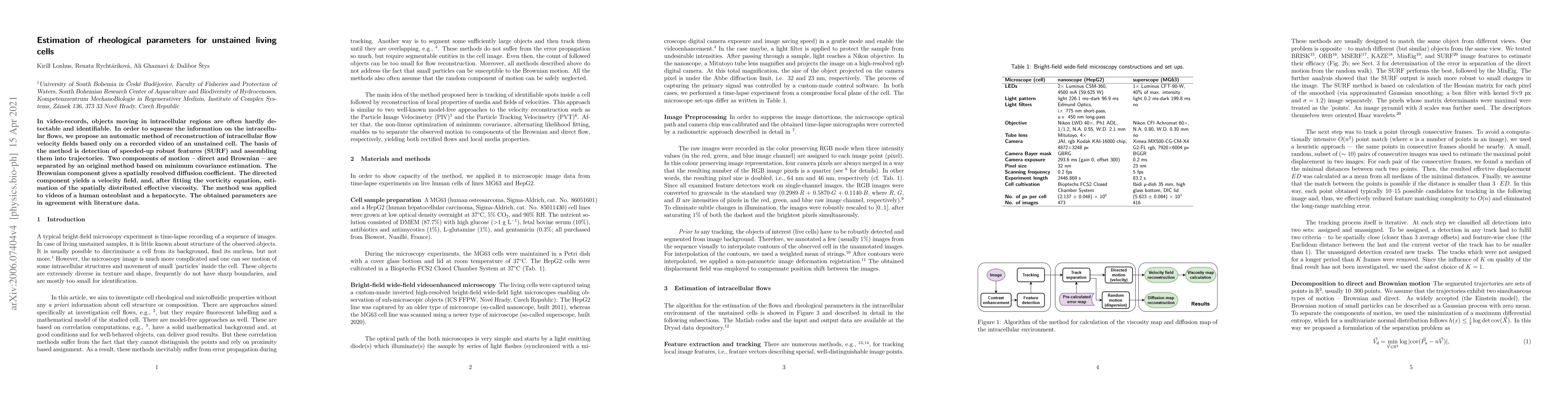 Researchers developed a method to estimate rheological parameters of unstained living cells from video recordings, separating motion into directed and Brownian components, yielding velocity fields and effective viscosity maps.