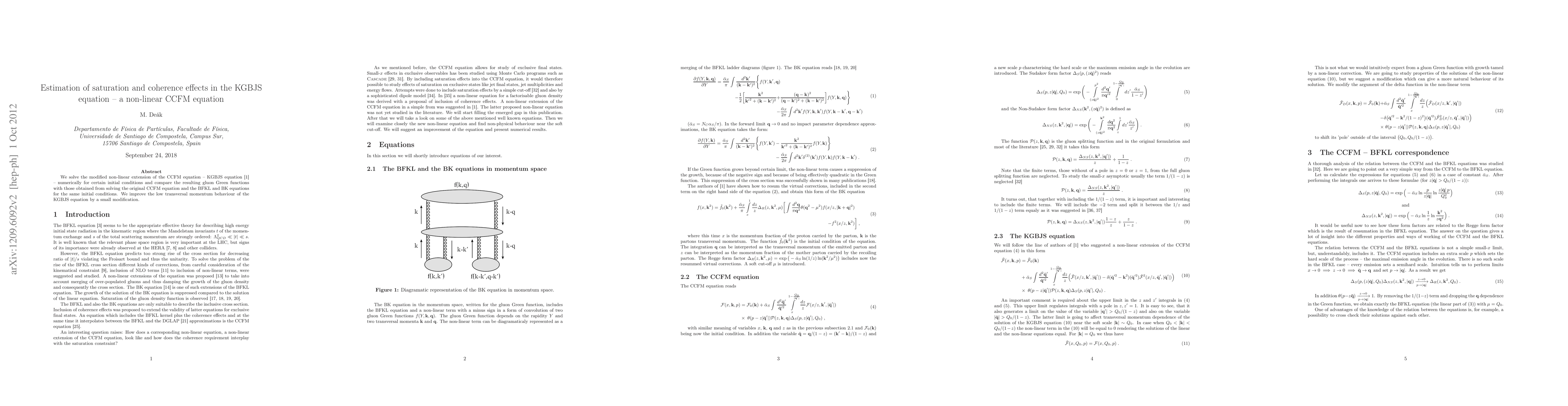 This paper numerically solves the KGBJS equation, a non-linear extension of the CCFM equation, and compares its gluon Green functions with those from the original CCFM, BFKL, and BK equations under the same initial conditions. A small modification enhances the KGBJS equation's low transversal momentum behavior.