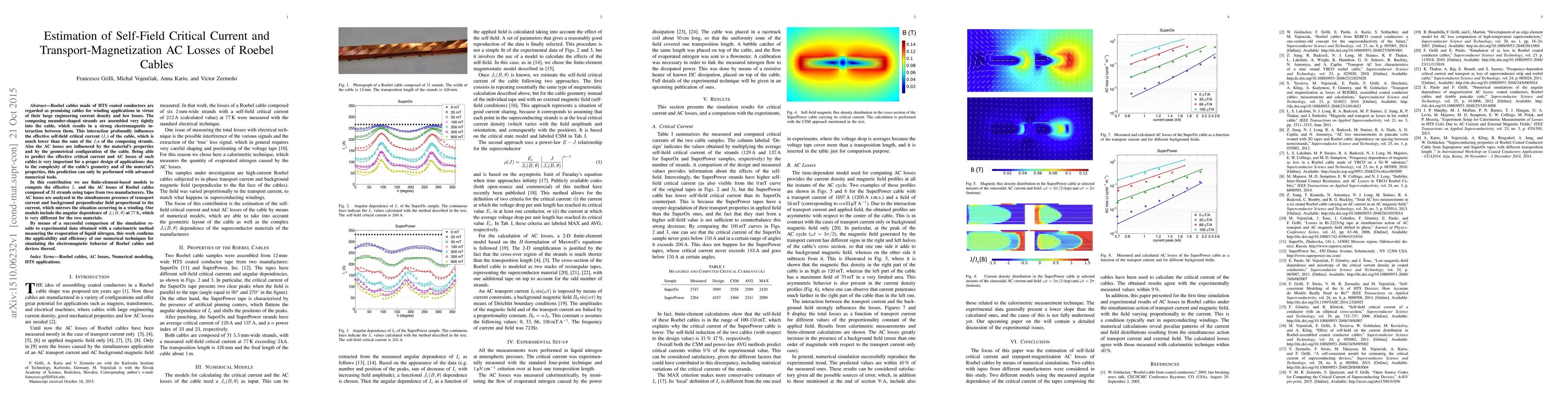 This paper estimates the self-field critical current and AC losses for Roebel cables using finite-element models, demonstrating their importance for proper design. The study validates the models by comparing simulation results with experimental data, confirming their efficiency for predicting electromagnetic behavior in such cables.