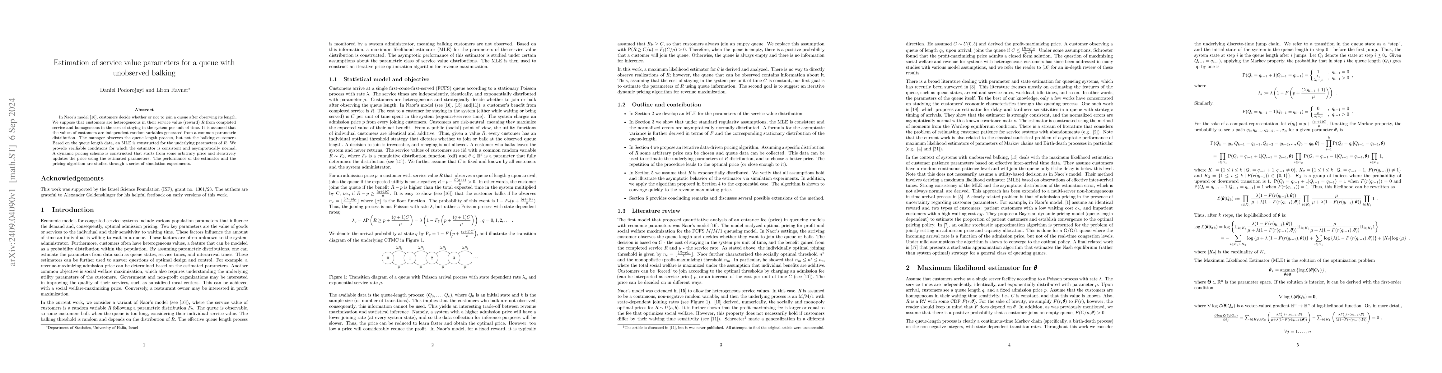 This paper estimates service value parameters for a queue where customers may balk unobserved. An MLE is developed based on queue length data, proving its consistency and asymptotic normality. A dynamic pricing scheme is proposed and evaluated through simulations.