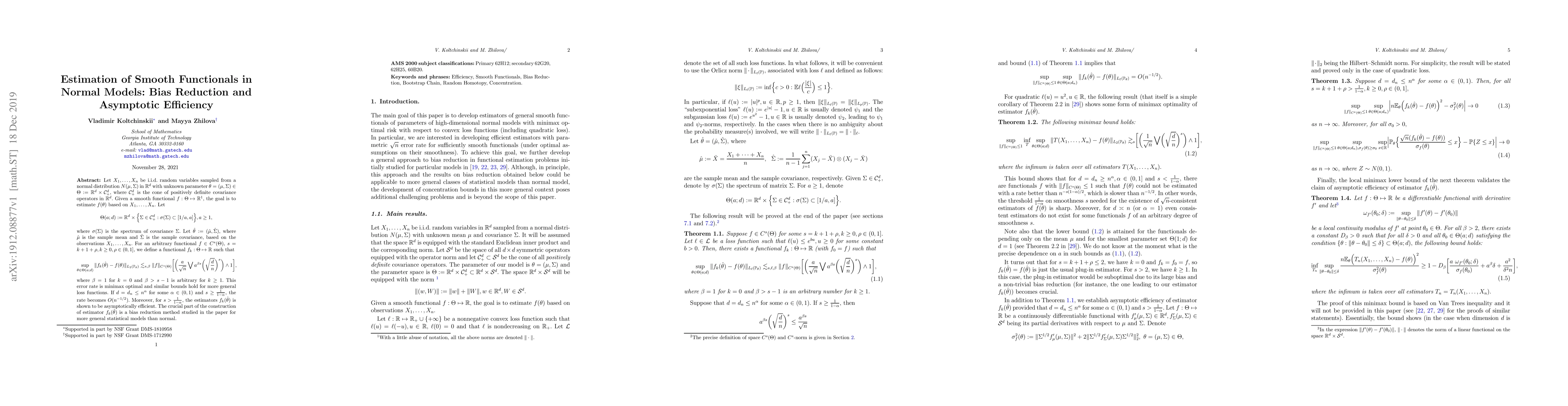 This research paper estimates smooth functionals in normal models using a bias reduction method that achieves minimax optimal error rates and is asymptotically efficient for large sample sizes.
