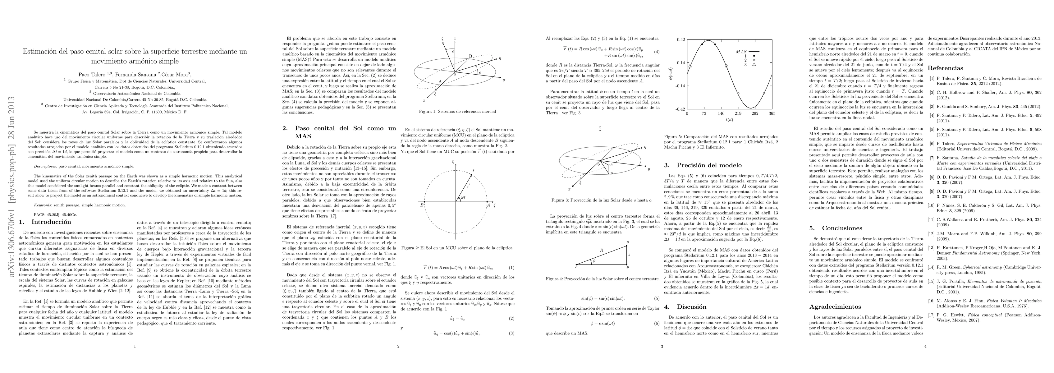 The kinematics of the Solar zenith passage on the Earth was shown as a simple harmonic motion. This analytical model used the uniform circular motion to describe the Earth's rotation relative to its axis and relative to the Sun, also this model considered the sunlight beams parallel and constant the obliquity of the ecliptic. We made a contrast between some data taken from of the software Stellarium 0.12.1 and the model, we obtained an uncertainty $\Delta t=1d$; this result allow to project the model as an astronomical context conducive to develop the kinematics of simple harmonic motion.