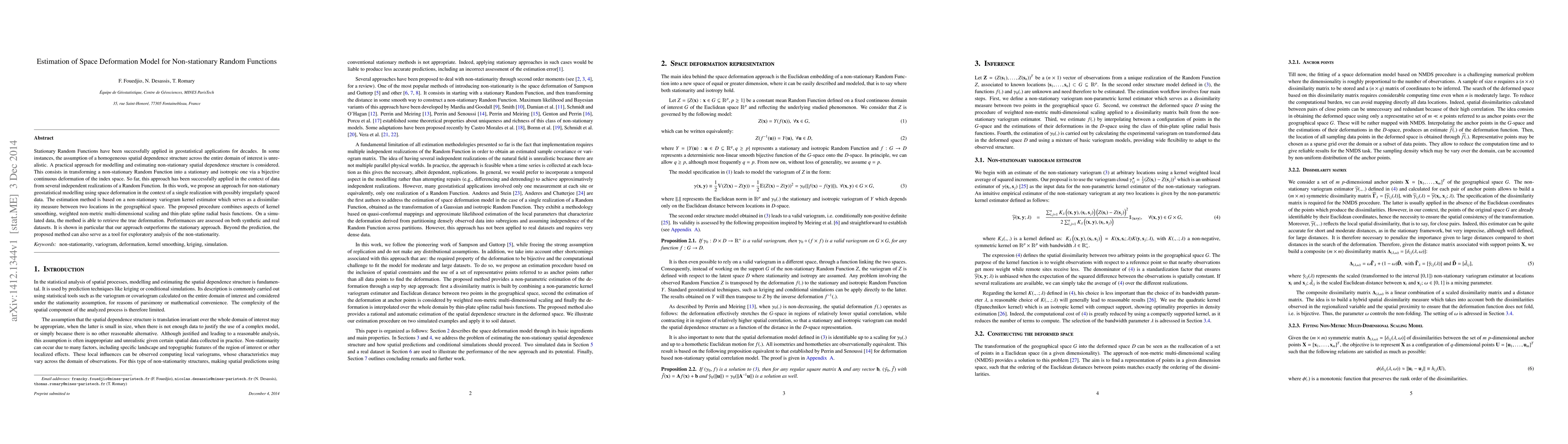 This paper proposes a novel method for estimating non-stationary spatial deformation models using space deformation techniques, transforming non-stationary data into a stationary form. The method combines kernel smoothing, weighted non-metric multidimensional scaling, and thin-plate spline radial basis functions, and outperforms traditional stationary methods on both synthetic and real datasets.
